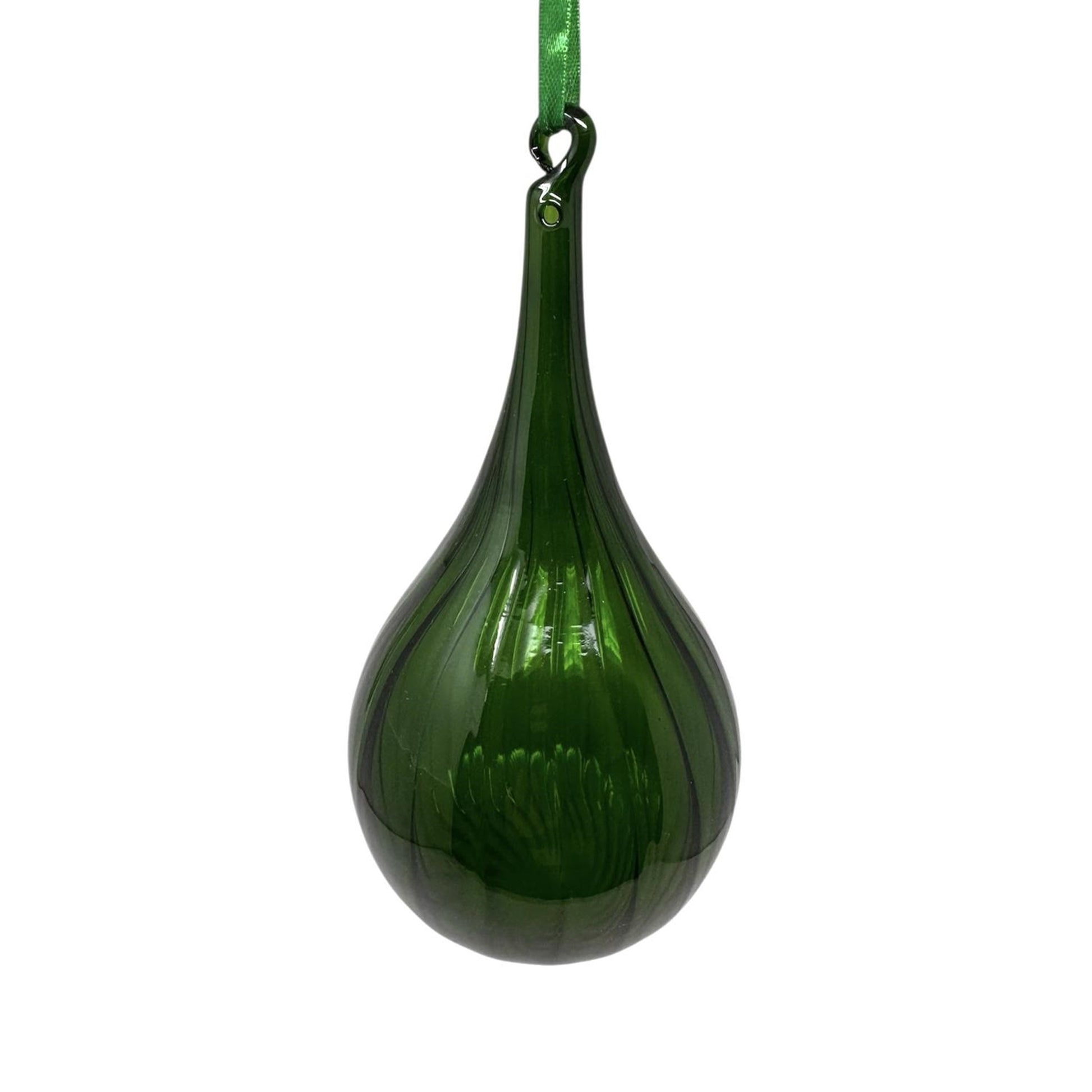 This 6.25" blown glass finial ornament features a rich, natural green hue, expertly crafted to bring depth and elegance to your décor. The vibrant color enhances its intricate glass design, making it a sophisticated accent for both seasonal and everyday settings. Its refined craftsmanship ensures a timeless addition to any collection.
