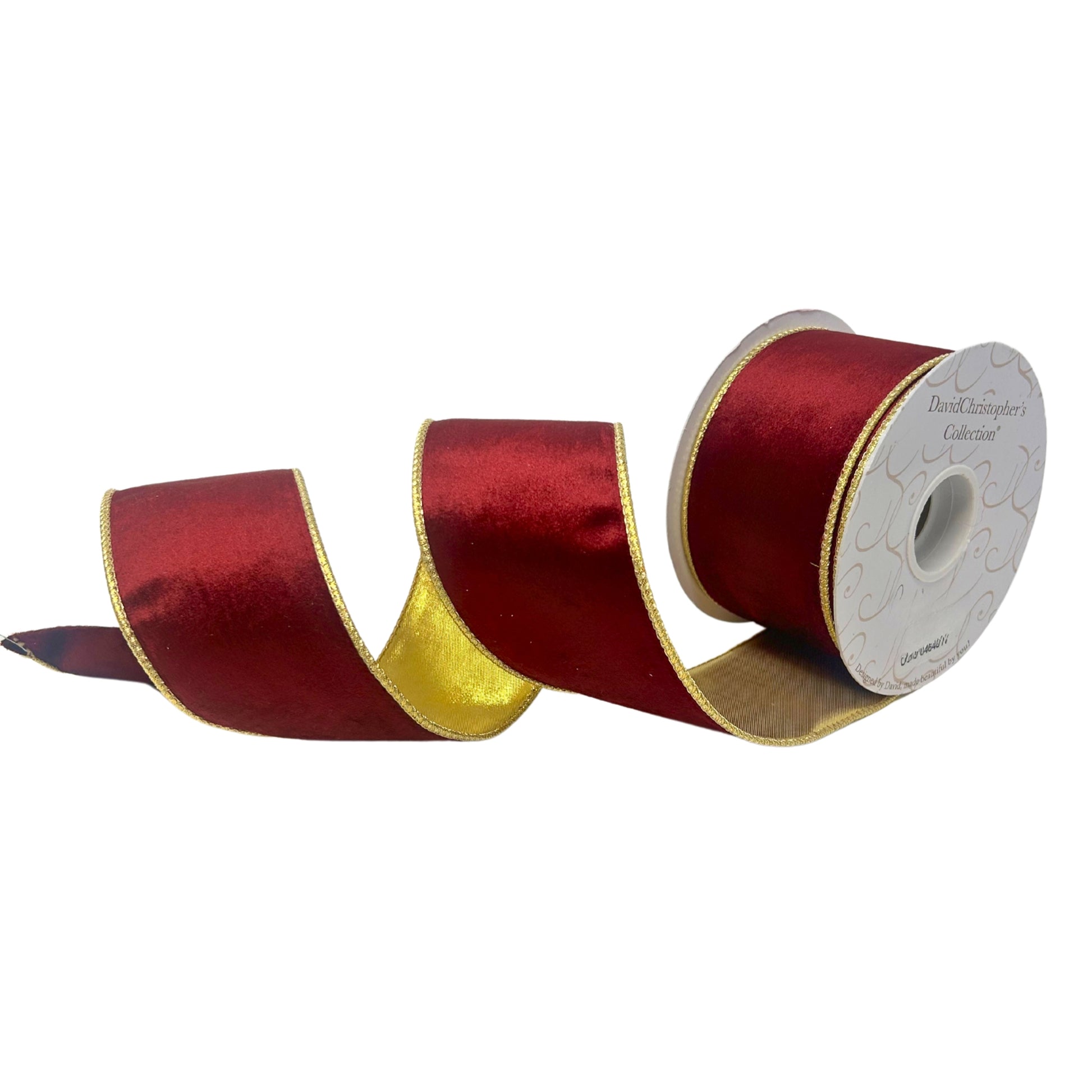 Burgandy Velvet Ribbon w/ Gold back 2.5" x 10yd | IR