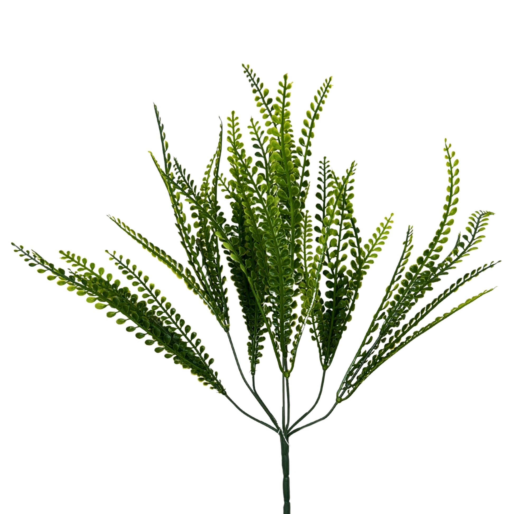 The Button Leaf Grass Bush features seven realistic stems, each adorned with distinctive rounded button-style leaves, standing 18" tall. Perfect for layering with other florals or greenery, this versatile bush adds a touch of natural elegance and a fresh, vibrant feel to any space.