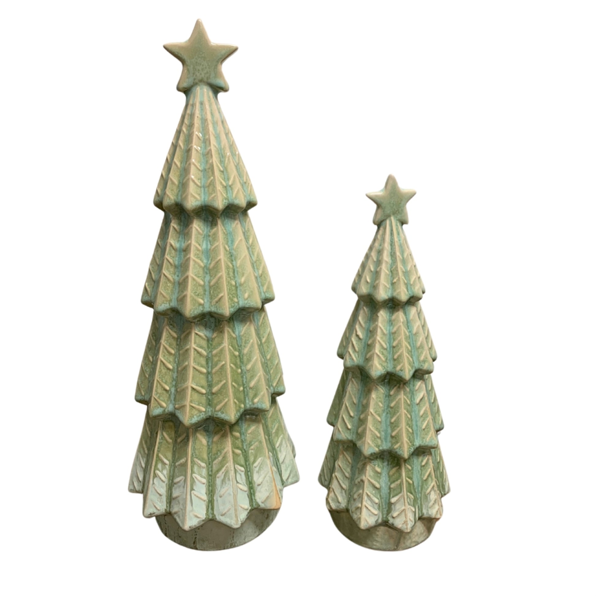 Ceramic Green Star Christmas Tree Set of 2 | LC