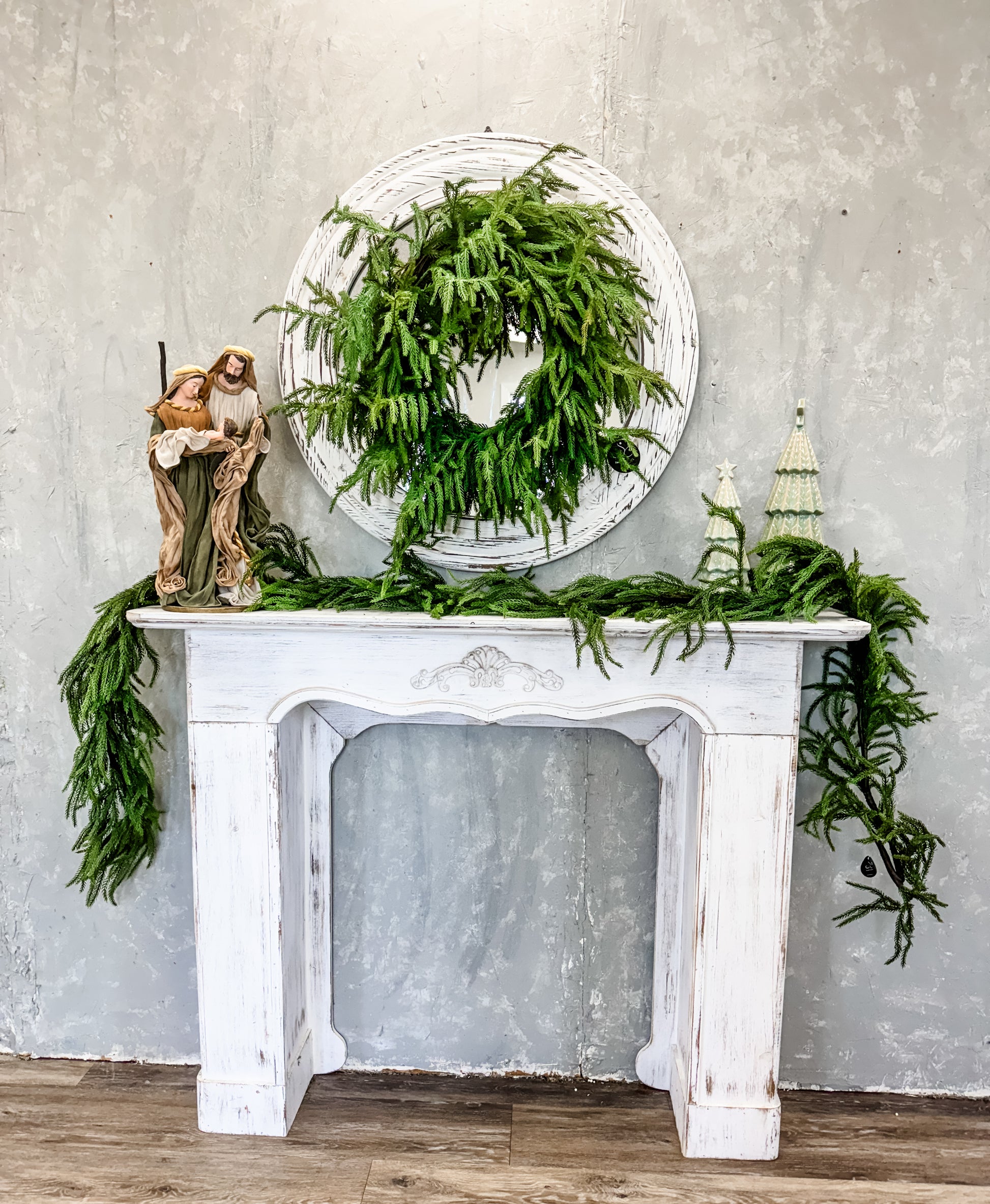 Take a look at how we used them with our Norfolk Pine Garland and Wreath on a mantle.