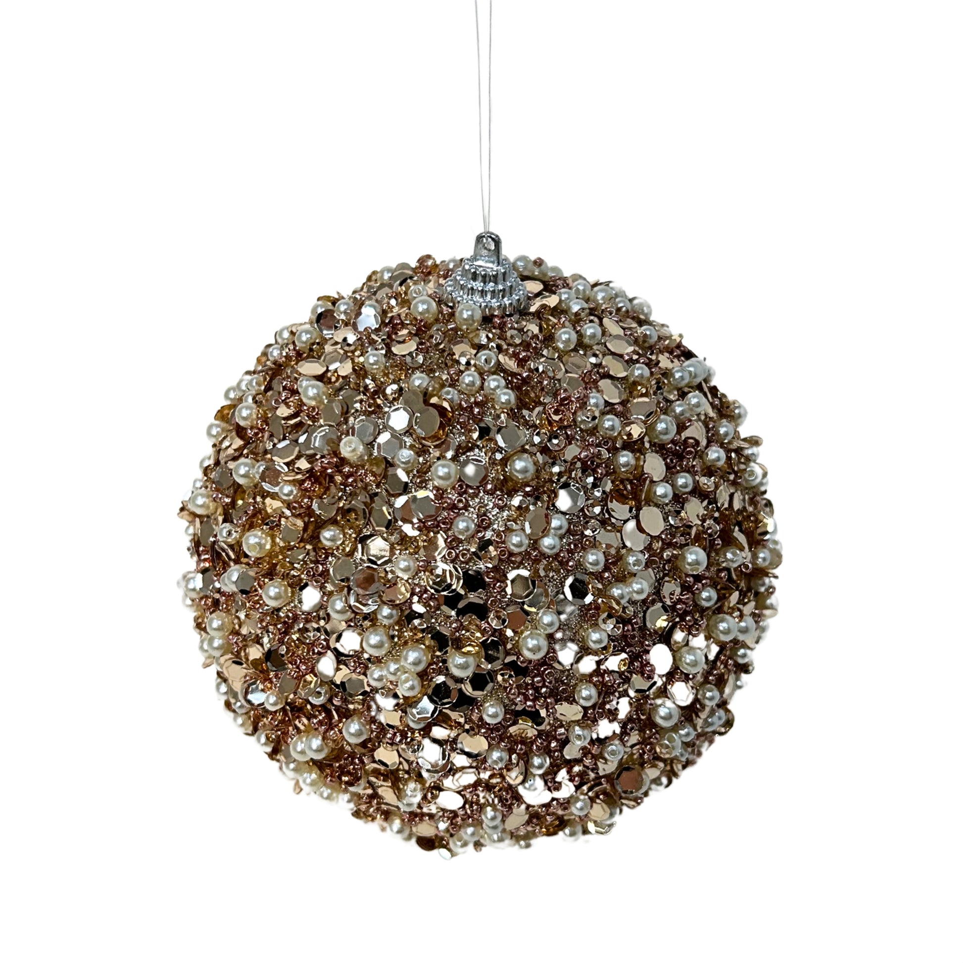 Champagne Splendor Sequin Pearl Ball Ornament 5" | KS