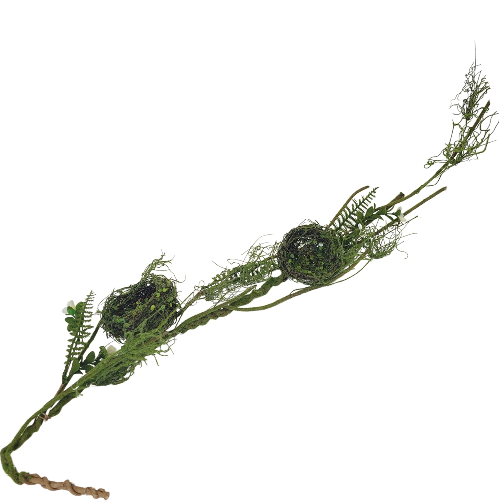 Featuring a stunning moss and foliage design, our Double Nest Moss/Foliage Vine offers a touch of natural beauty to any space. Measuring 40 inches, it adds greenery and texture to your home or office. Each vine is carefully crafted with durable materials, ensuring long-lasting beauty and easy maintenance.
