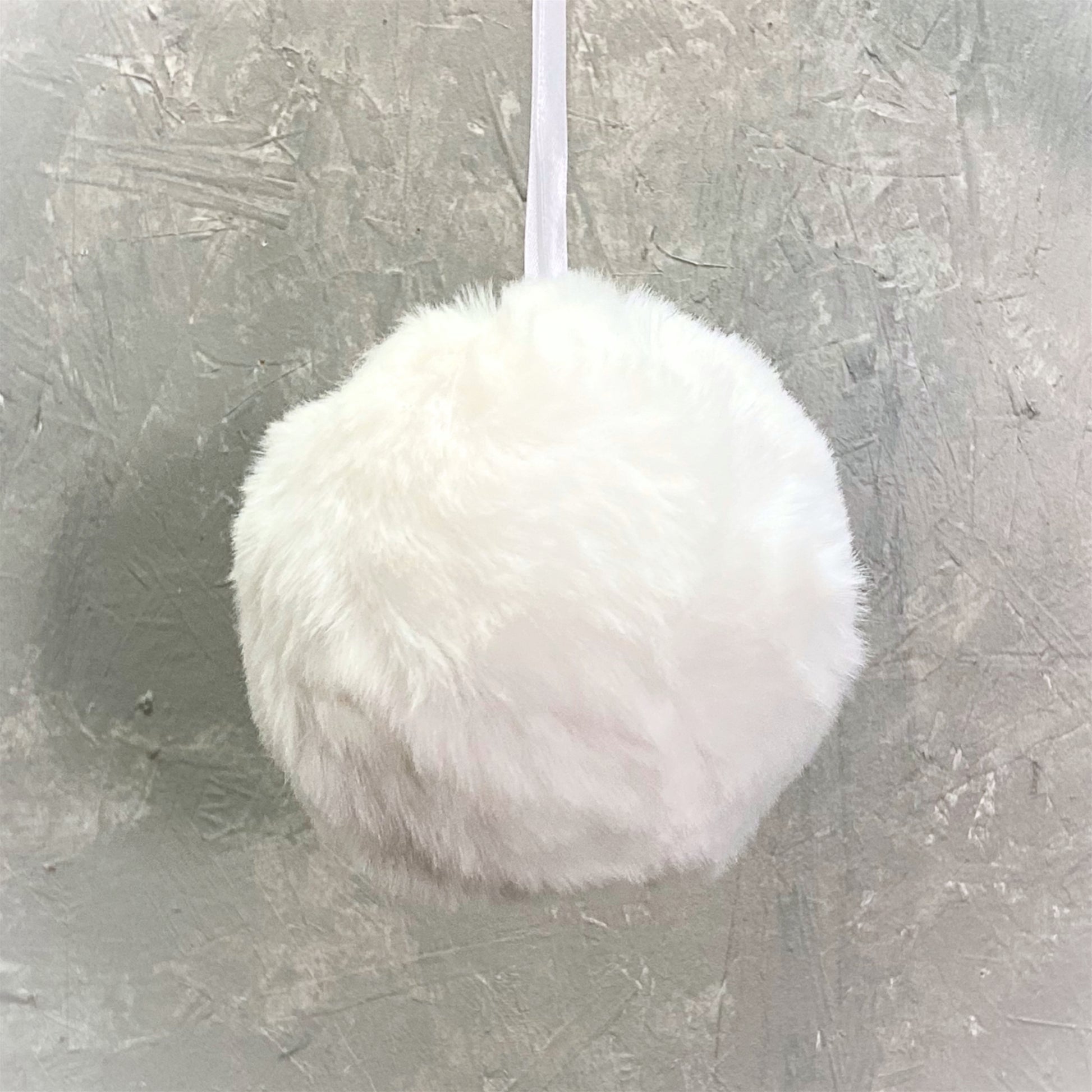 Elegant Artificial Fur Ball Ornament 5" - White | KS