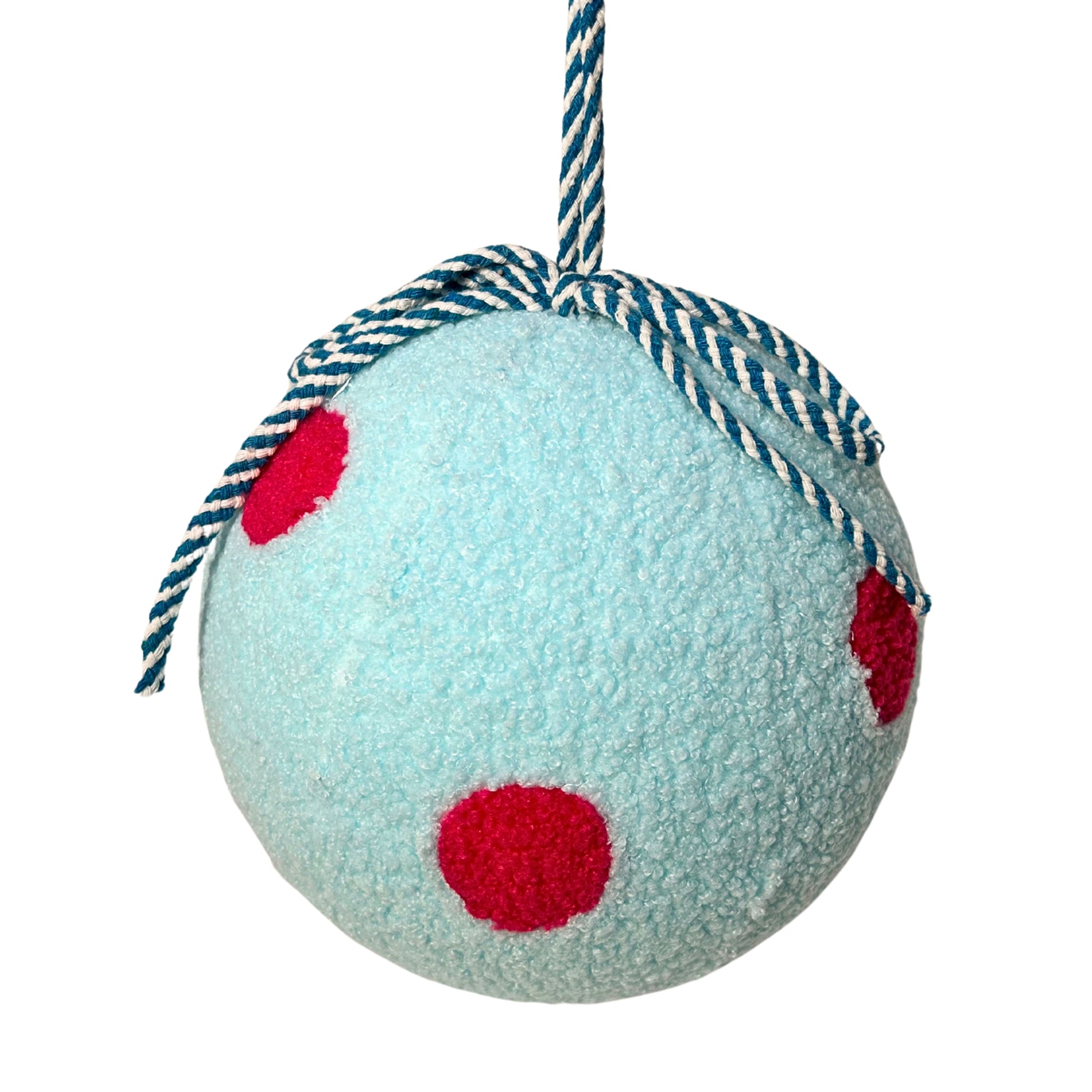 Fuzzy Polka Dot Ball Ornament - Turq/Hot Pink 6” |KS