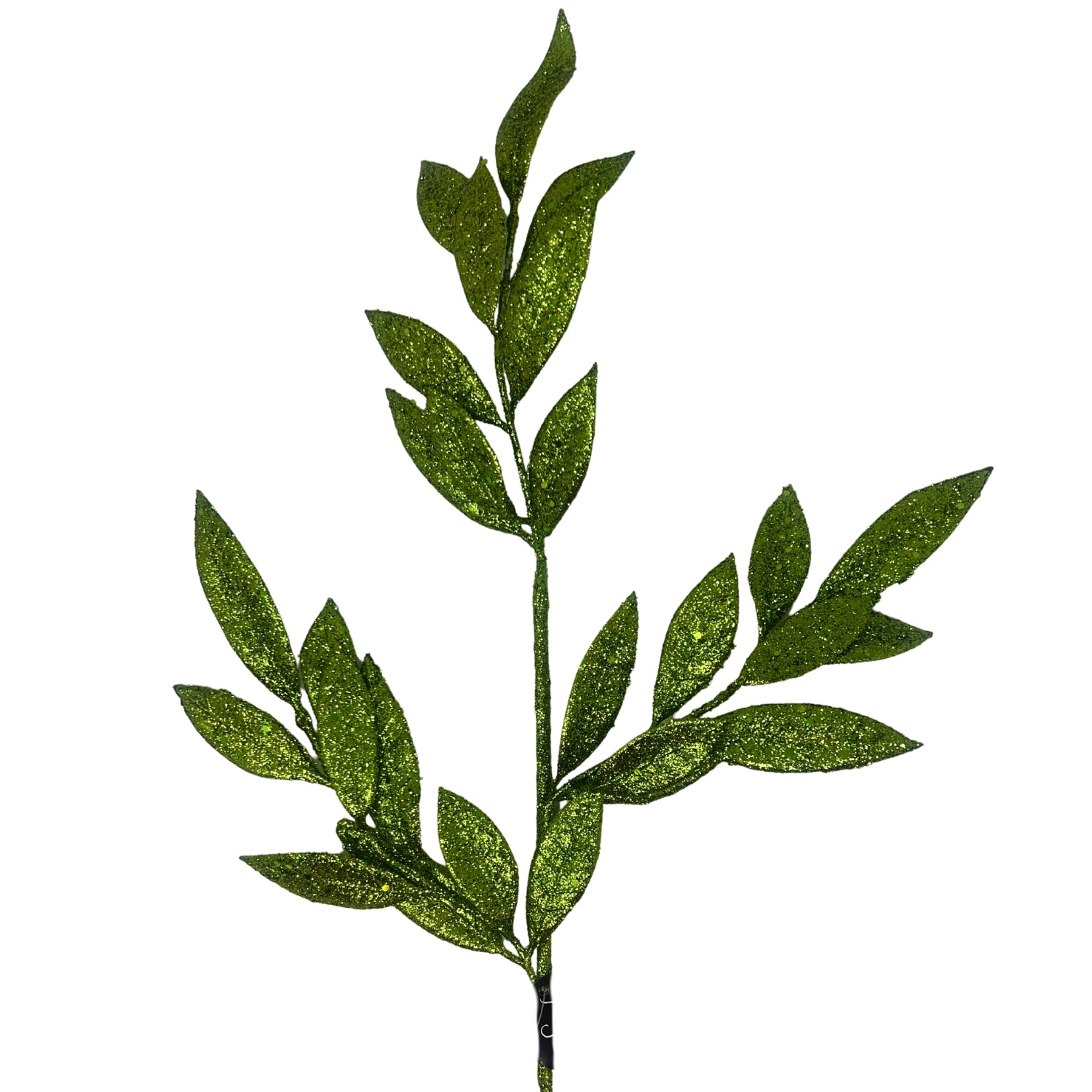 Glitter Bay Leaf Spray 29" - Apple Green | KS