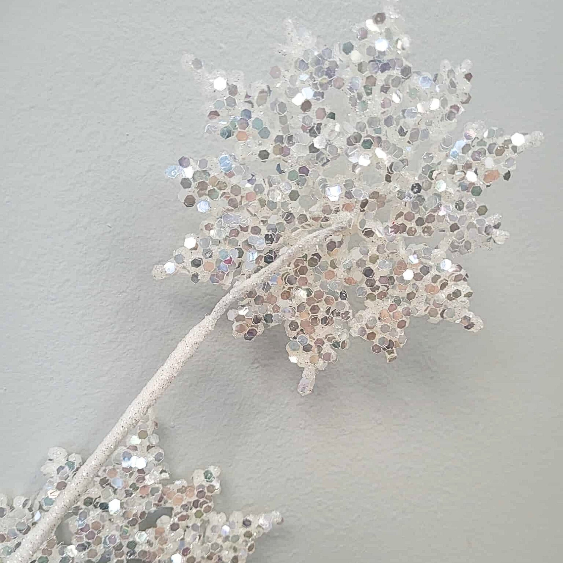 Bring a magical, festive sparkle to your décor with the Glitter Snowflake Spray. At 30.5 inches, its glittering white/silver snowflakes create a joyful, radiant touch for wreaths, garlands, centerpieces, or any holiday arrangement.