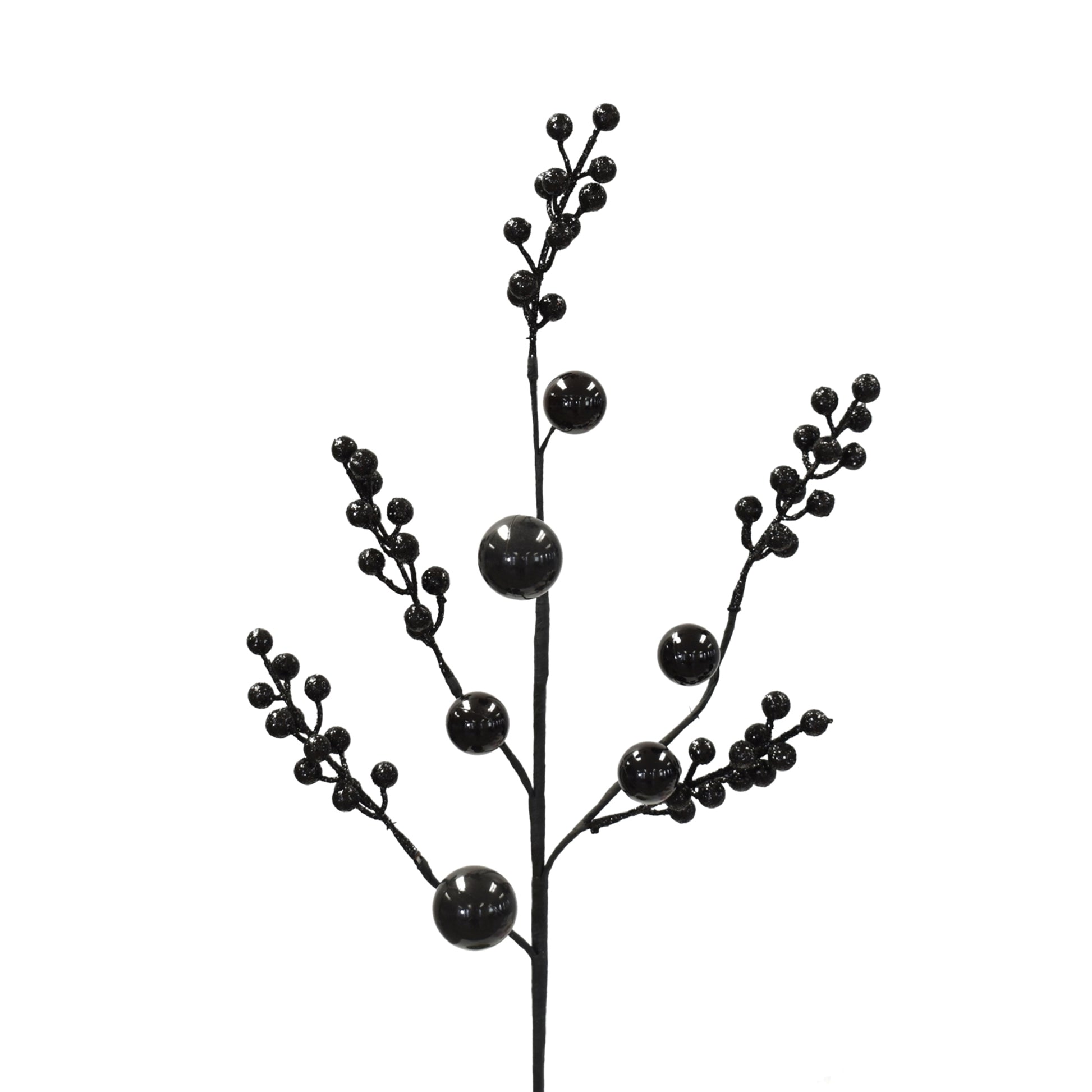 Add a touch of sparkle to your seasonal decor with this 28.5" Glittered Berry/Shiny Ball Spray in Black. The flexible, lush foliage is adorned with glittered clusters and shining balls, creating an eye-catching accent that is sure to be a showstopper in your holiday displays.