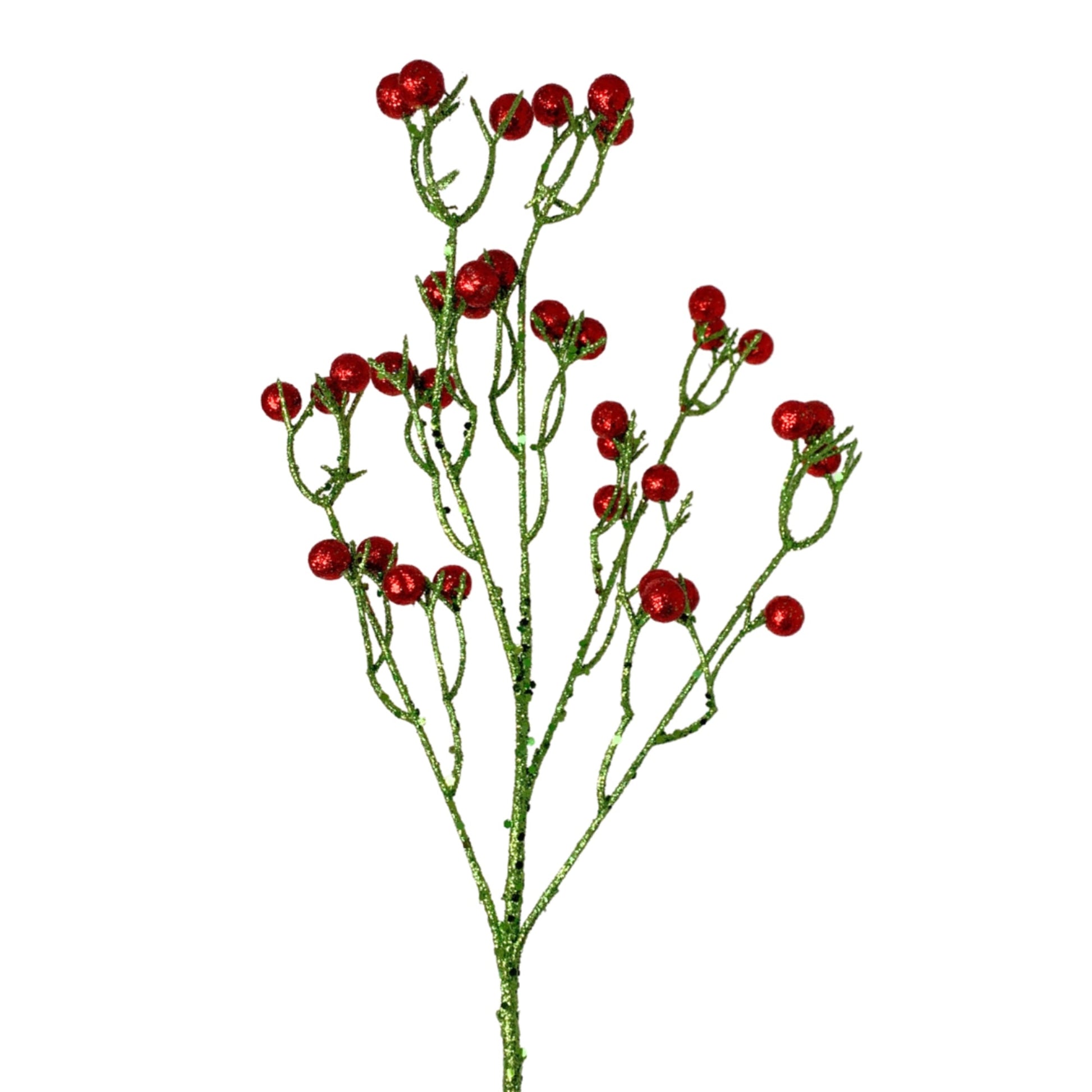 The Glittered Berry Stem adds refined brilliance to seasonal décor. At 23.5 inches, its jewel-like berries glisten with a sparkling finish, making it a chic addition to trees, garlands, or elegant arrangements.