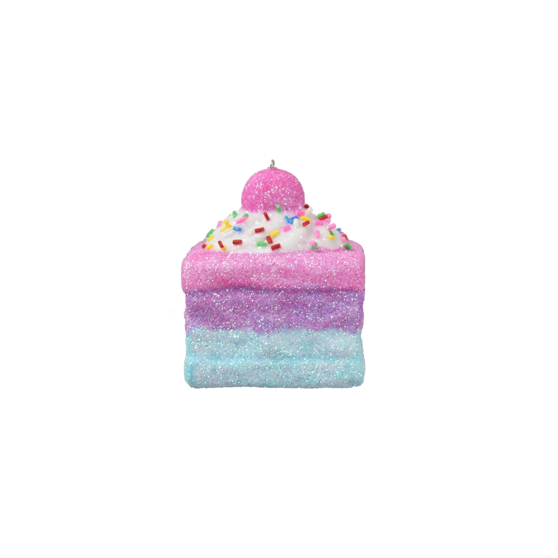 Stay festive with these brightly-colored Glittered/Sprinkle Sugared Cake Ornaments. Perfect for decorating any tree, these 2" x 2.5" ornaments in pink, purple, and blue hues are sure to add a cheerful and fun touch to your holiday decor.