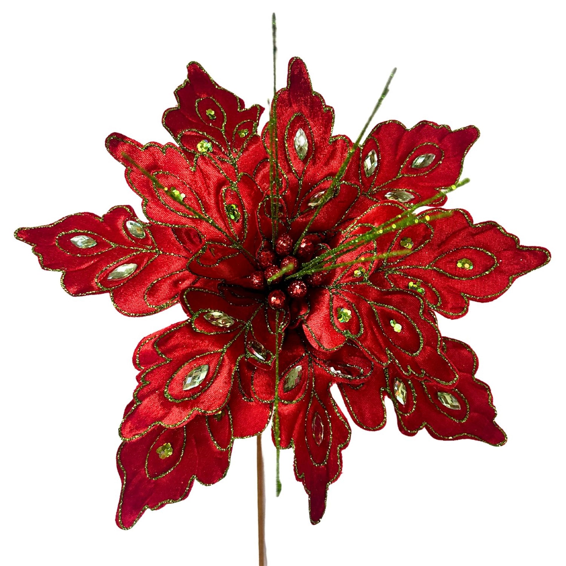 Glitz Gem Velvet Poinsettia Stem - Red/Green 27” | KS