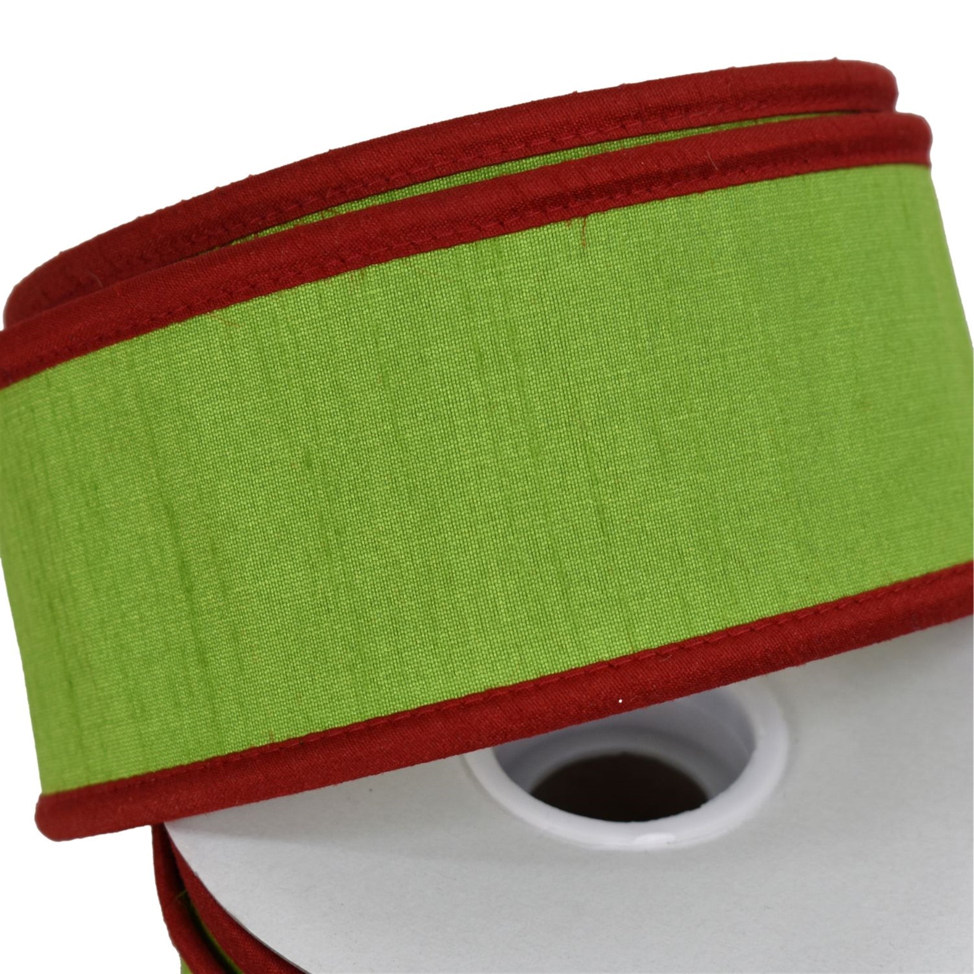 Green Faux Dupioni Ribbon w/ Red Piping Edge 2.5" x 10yd | IR