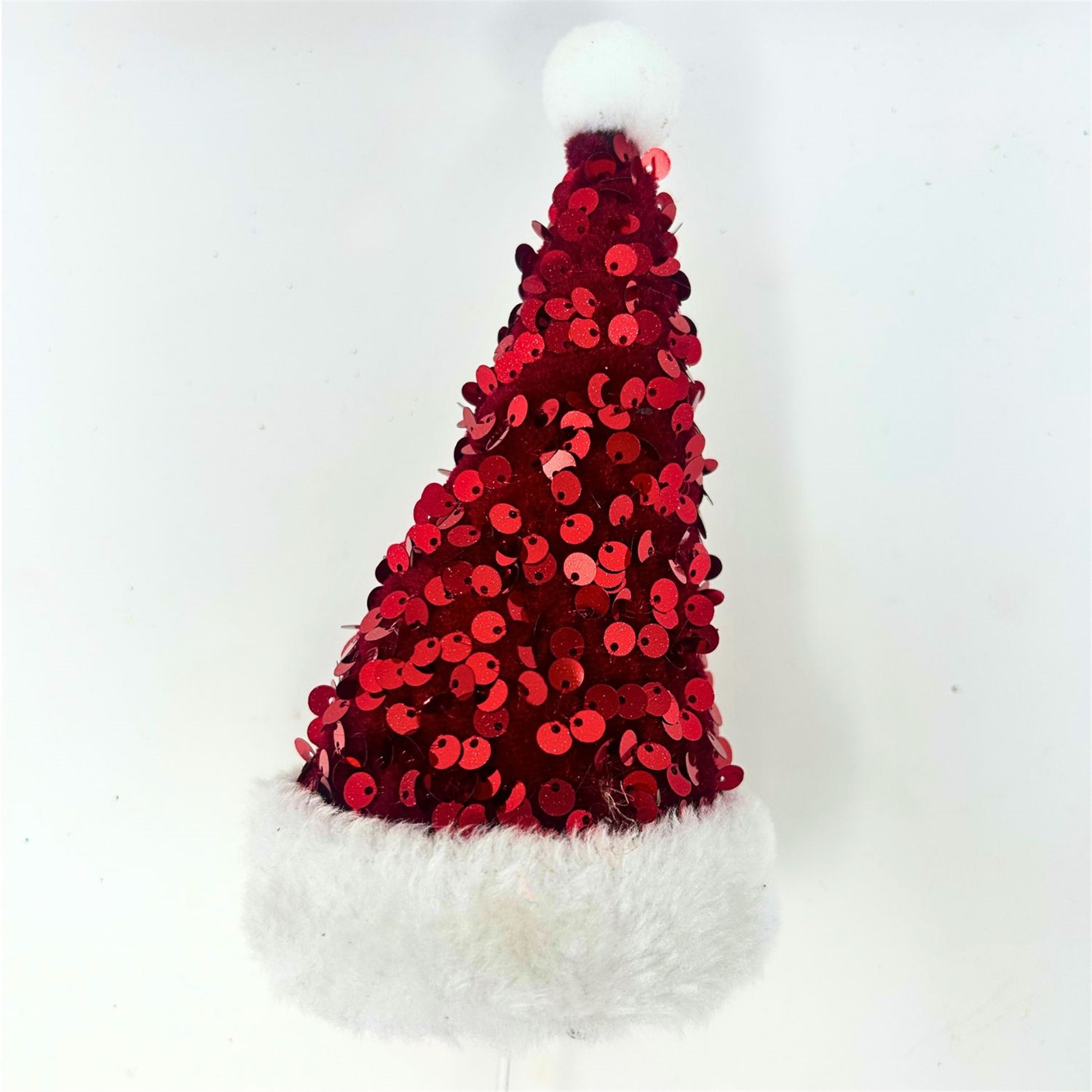 Bring festive cheer to your décor with this HO HO’s Sequin Hat Spray. Featuring sparkling red and white sequin hats on 29-inch stems, it’s perfect for adding playful holiday accents to trees, wreaths, garlands, or centerpieces. A fun and whimsical touch that spreads Christmas joy throughout your display.