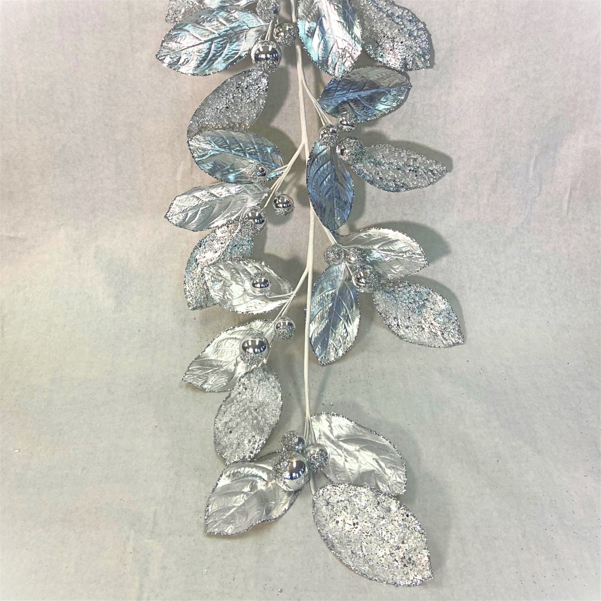 Icy Ice Metallic Magnolia Leaf Ball Garland 50" - Silver | QG