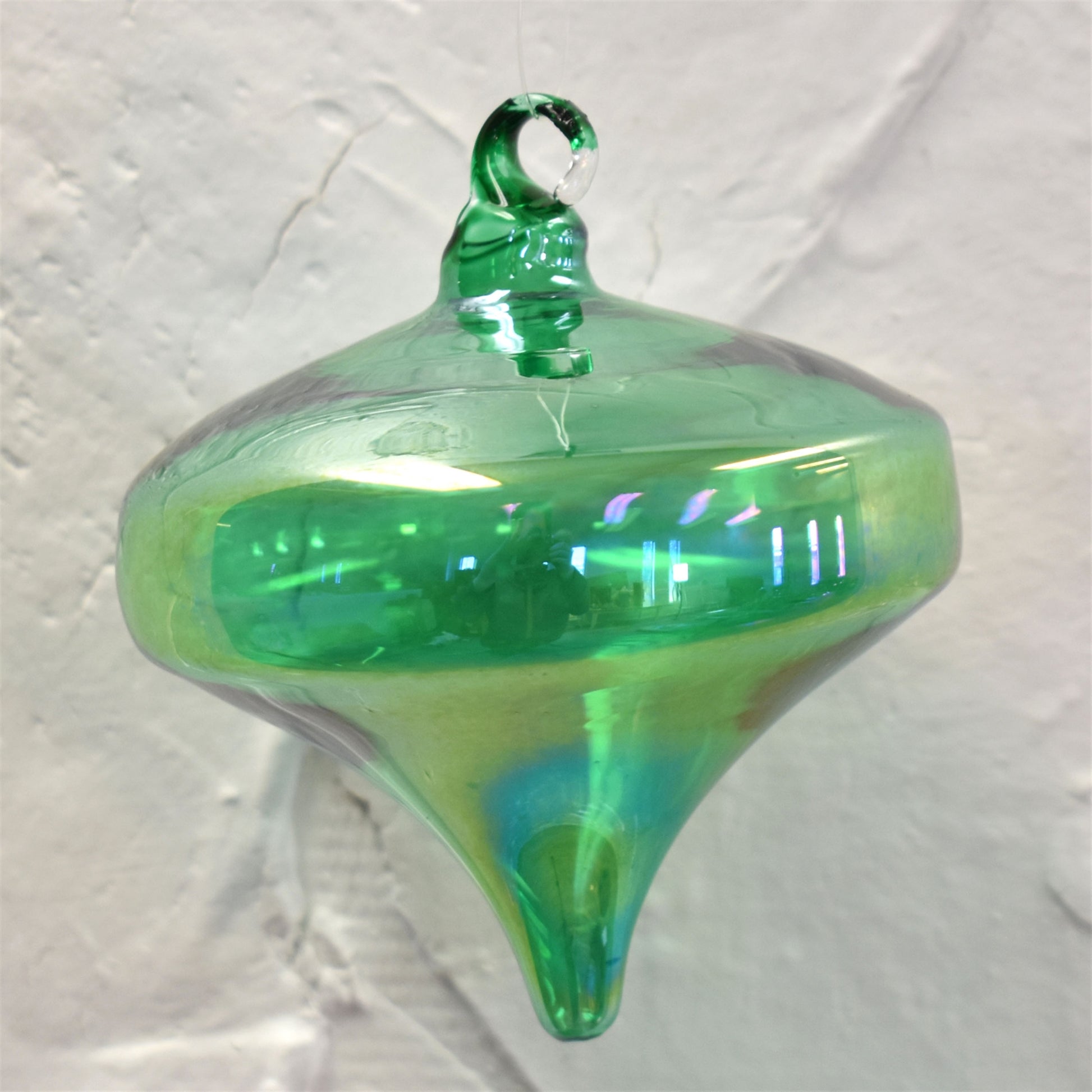 Iridescent Blown Glass Onion Finial Ornament - Emerald Green 3"x3"x4" | LC