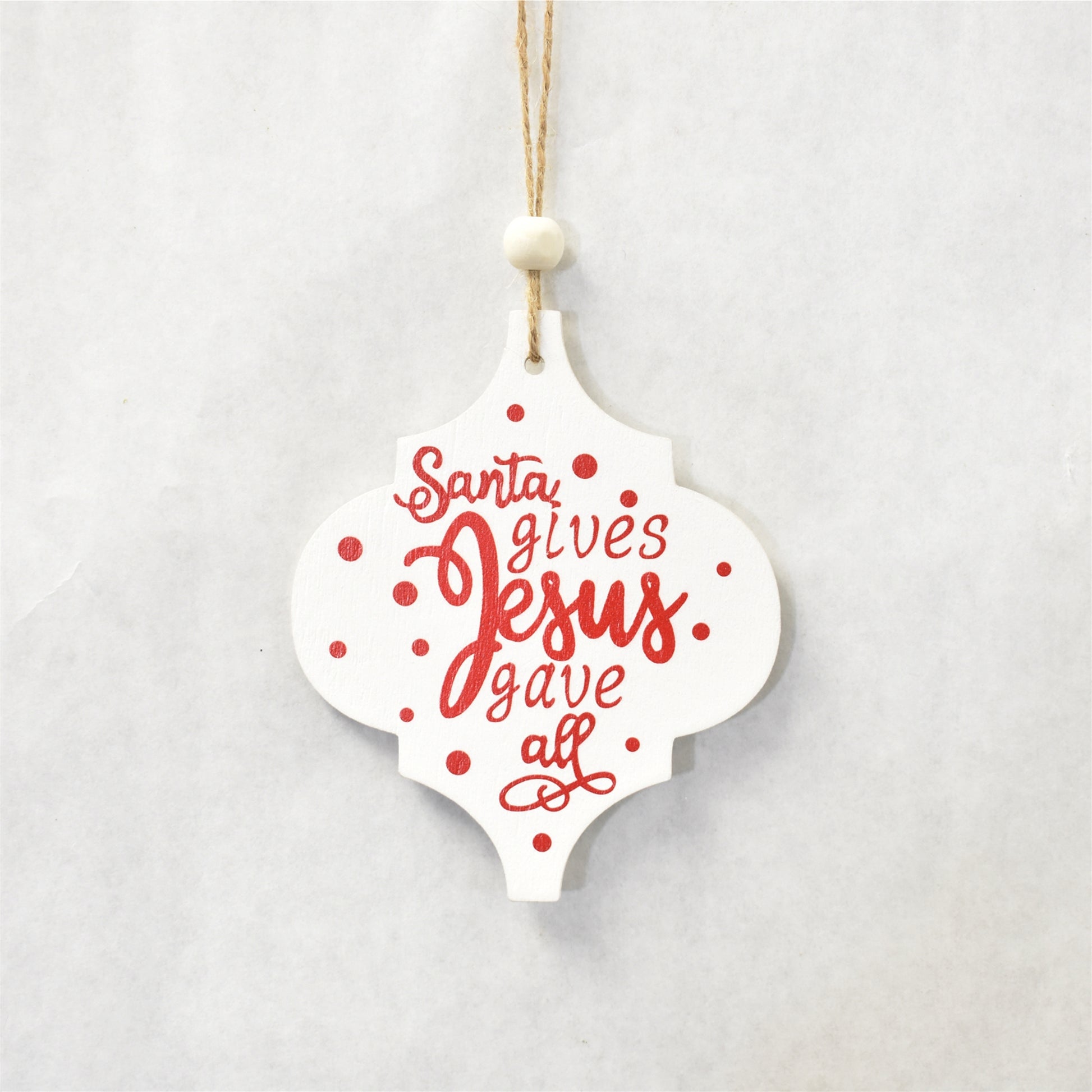 Jesus Gave Wooden Disk Ornament 4.75" in White/Red | QGC22