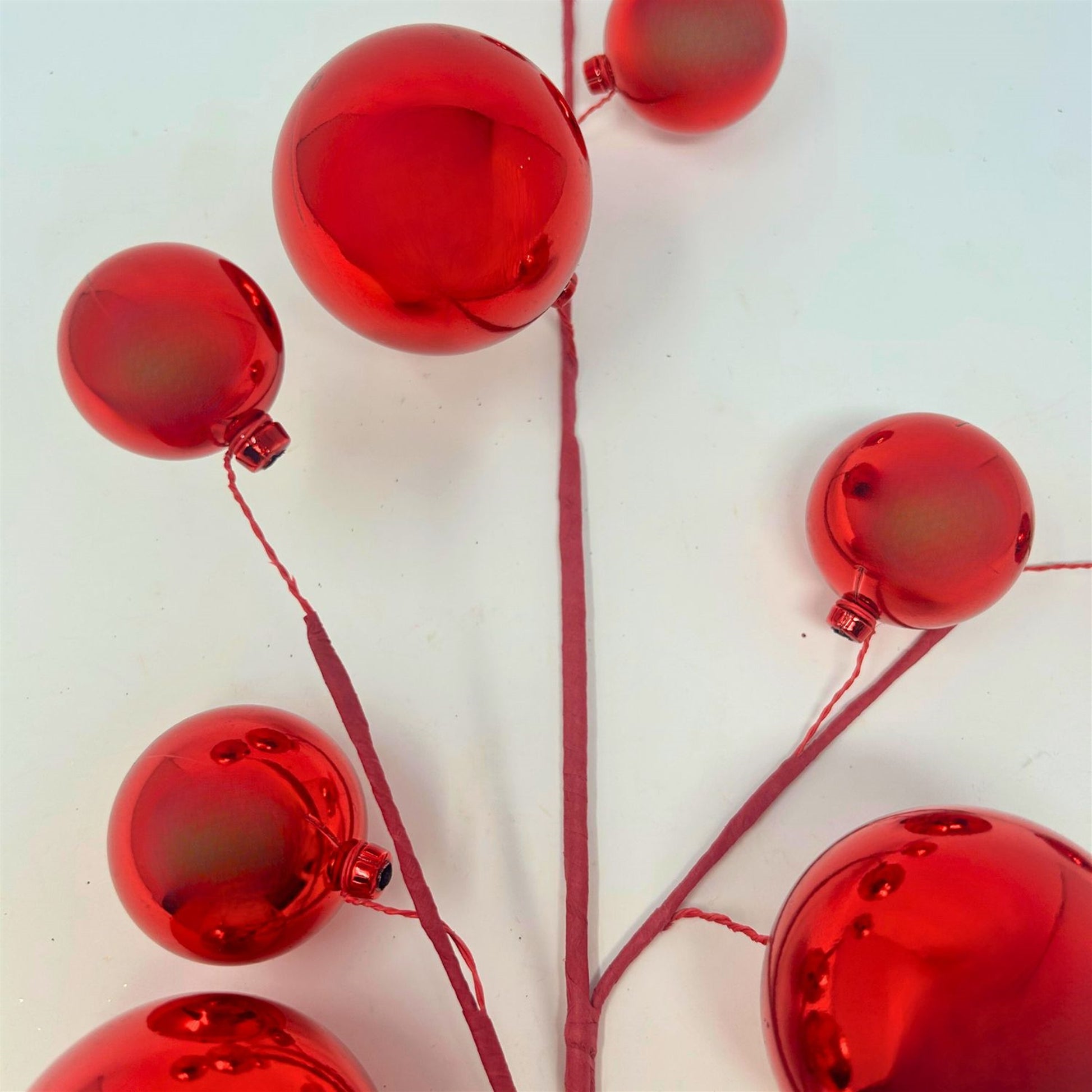 Bring bold holiday cheer to your décor with this Jumbo Cherished Ball Spray. Measuring 27 inches, it features vibrant red ball accents on a flexible stem, perfect for wreaths, garlands, centerpieces, or festive floral arrangements. A striking accent that adds color, texture, and festive charm to any display.