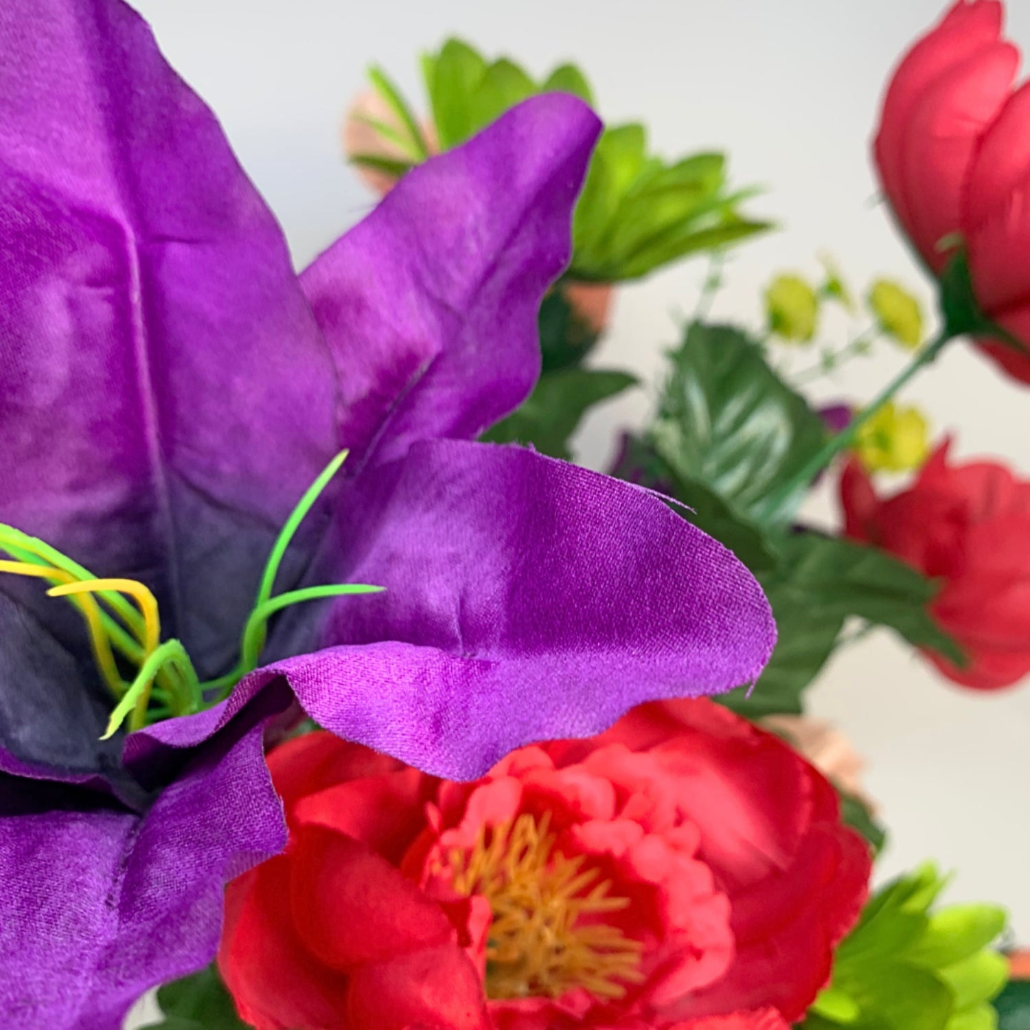 This mixed bush of lilies, roses, and cornflowers adds vibrant flowers to your arrangements. Each bush includes 20 inches of colorful flowers in pink, purple, and green varieties.