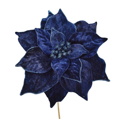 This Lux Velvet Poinsettia 20'' in Midnight Blue makes a festive and sophisticated addition to your Christmas decorations. Crafted with lux velvet material, it features a beautiful poinsettia in midnight blue and is perfect for creating a classic, elegant holiday look.