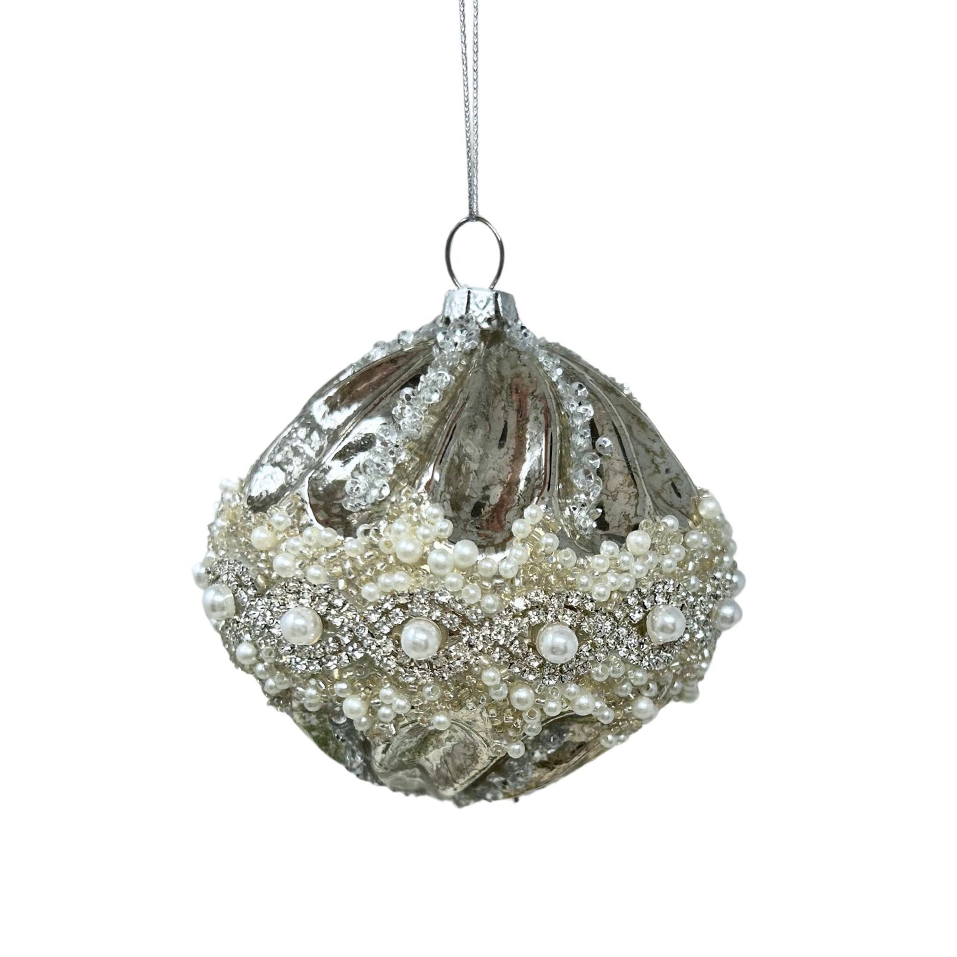 Mercury Glass Onion Ornament w/ Pearl Center 3.5" | TG