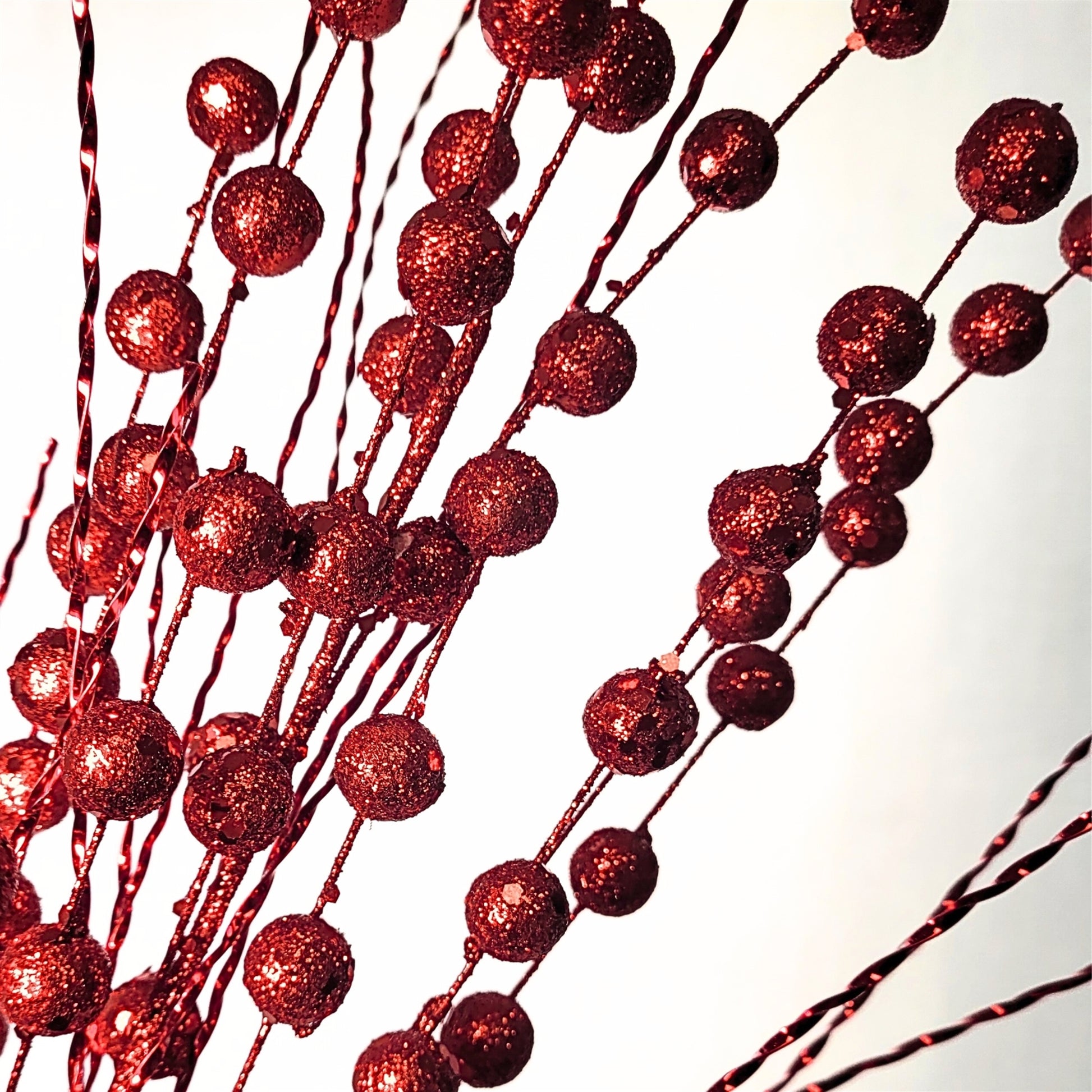 The Metallic Twist Glitter Spray dazzles in festive red with sparkling glitter accents, bringing cheerful shimmer and whimsical flair to holiday displays. Measuring 32 inches, its twisting stems add lively movement and refined sparkle to wreaths, garlands, or centerpieces.