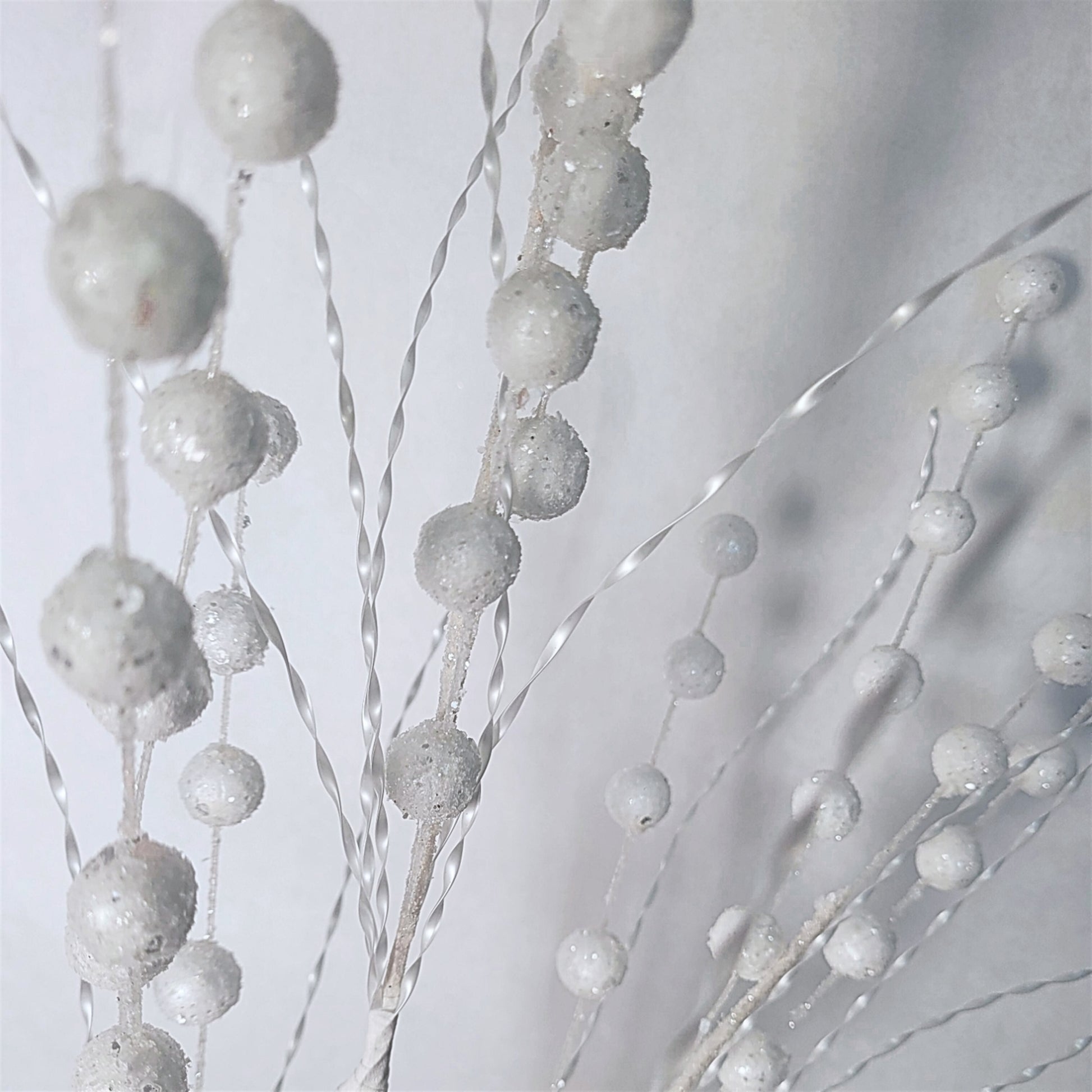 The Metallic Twist Glitter Spray sparkles in bright white, evoking glistening winter magic. Measuring 32 inches, its twisting stems shimmer gracefully, adding a whimsical yet elegant accent to wreaths, garlands, or holiday centerpieces.