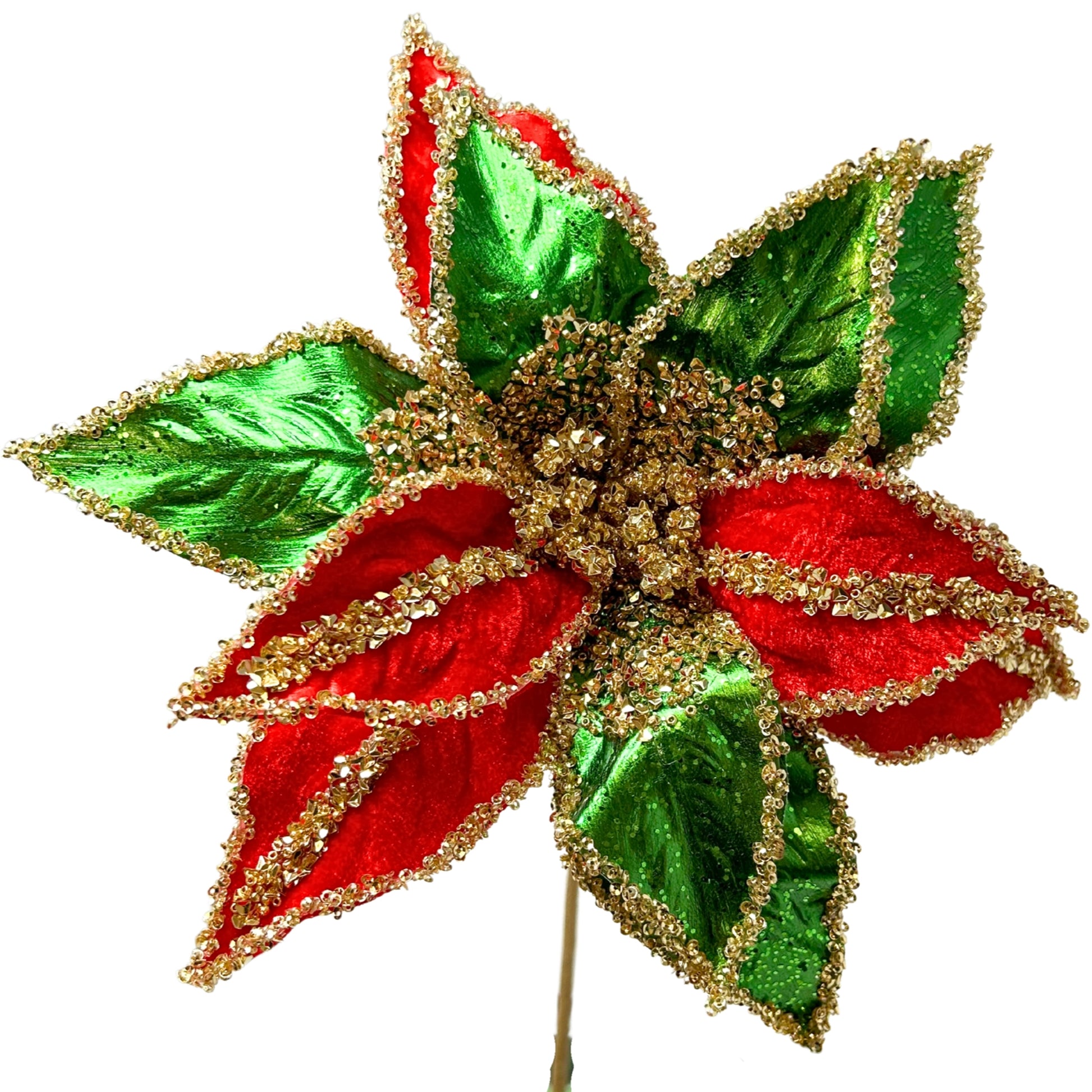 Metallic Velvet Poinsettia Stem - Red/Green 20" | TA
