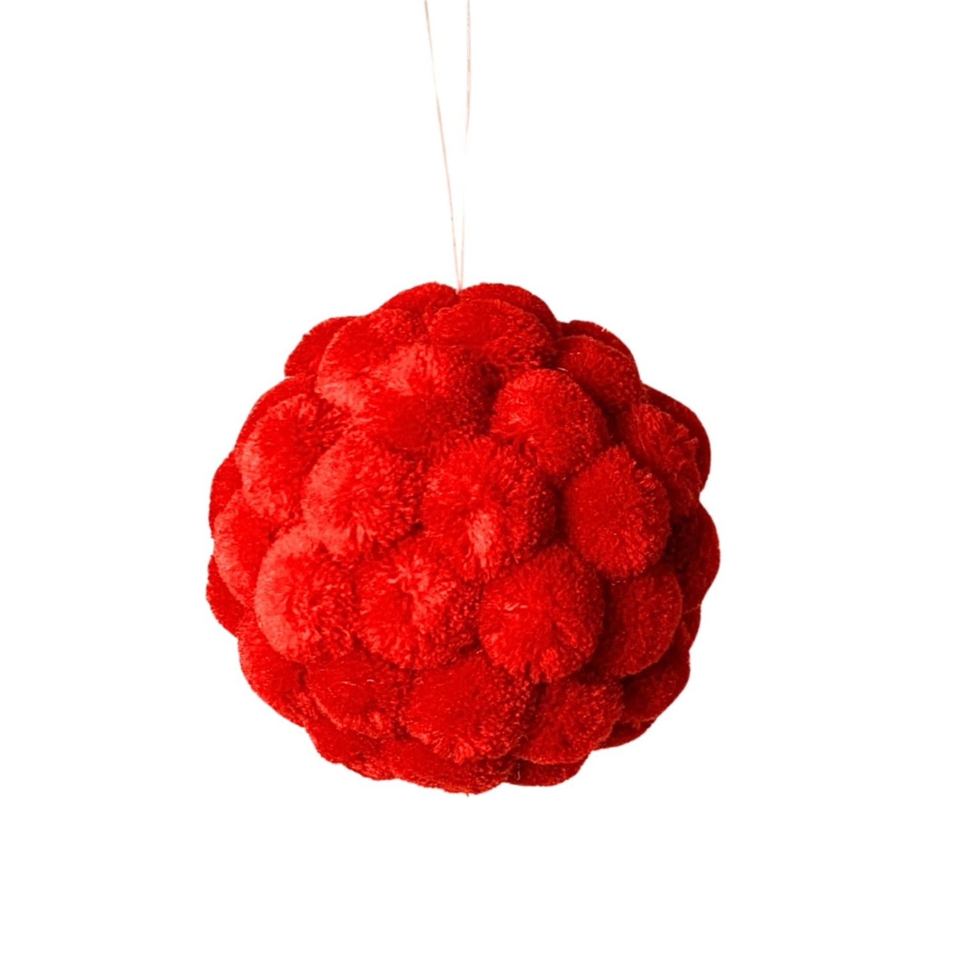 Mini Pom Pom Red Ball Ornament 4.5” |KS