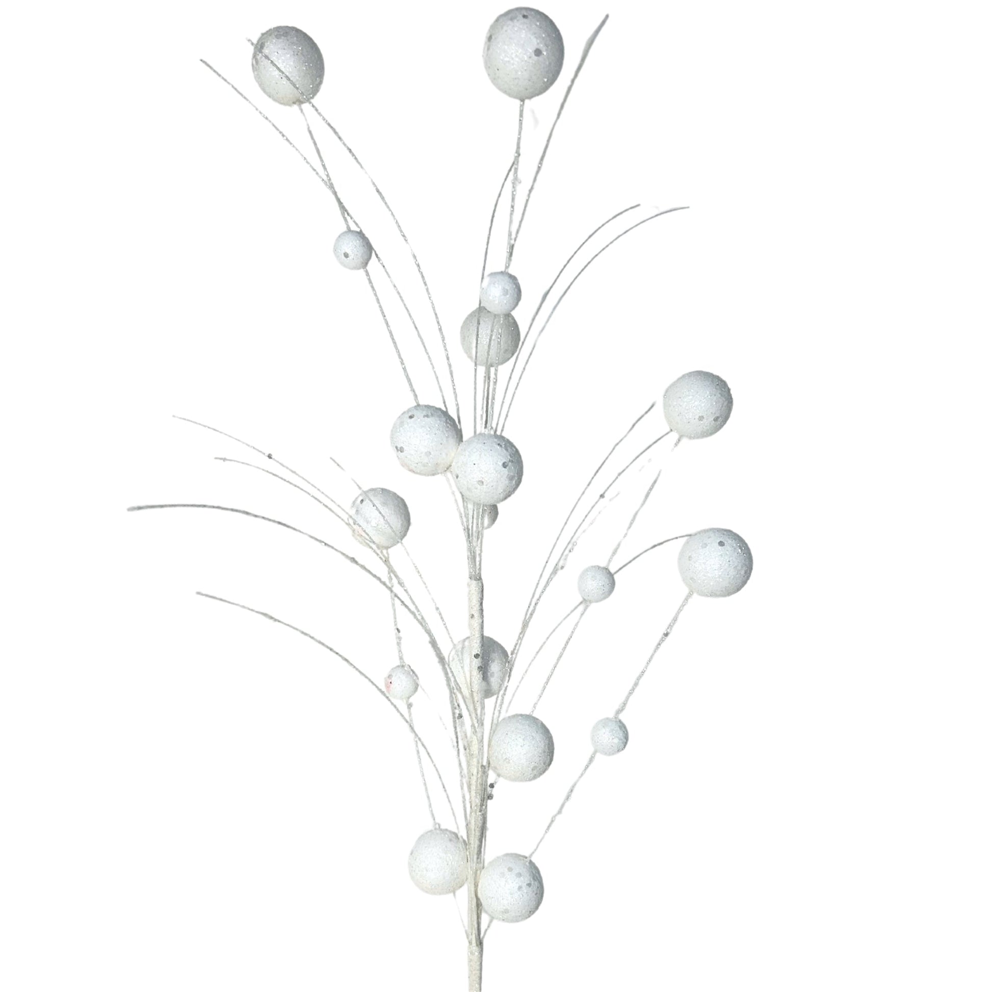Mixed Size Glittered Ball Spray - White 27" | KS