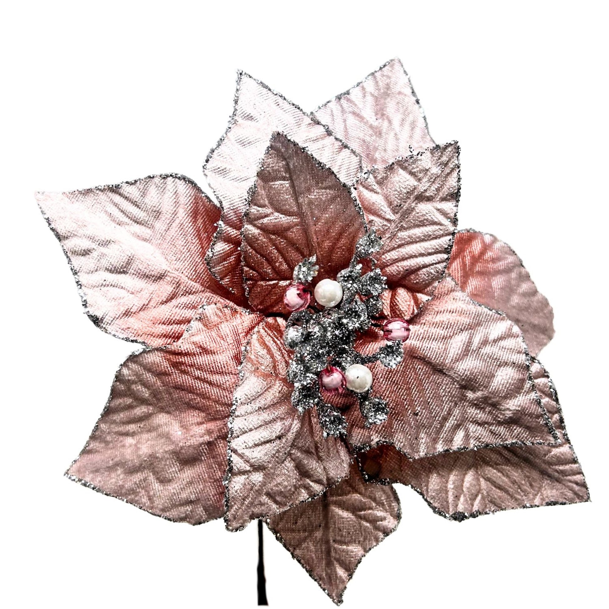 The 15-inch Ombre Poinsettia Pick in pink adds a refined and elegant touch to your holiday decor. Featuring a carefully crafted gradient effect, this piece enhances wreaths, centerpieces, and trees with subtle color variation.