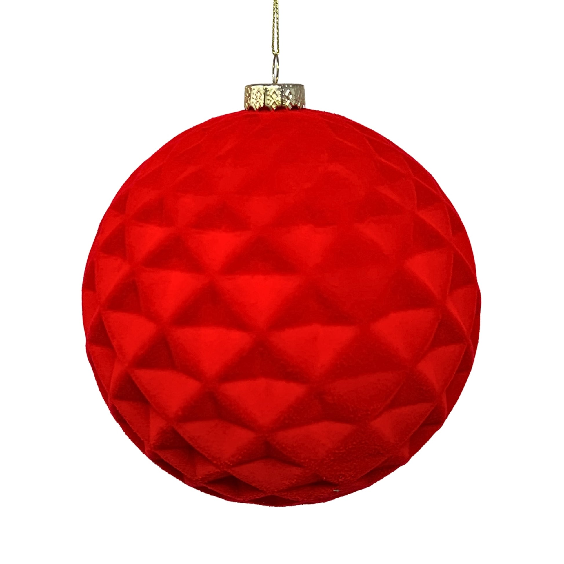Plastic Flocked Diamond Ball Ornament - Cherry Red 6" | YK