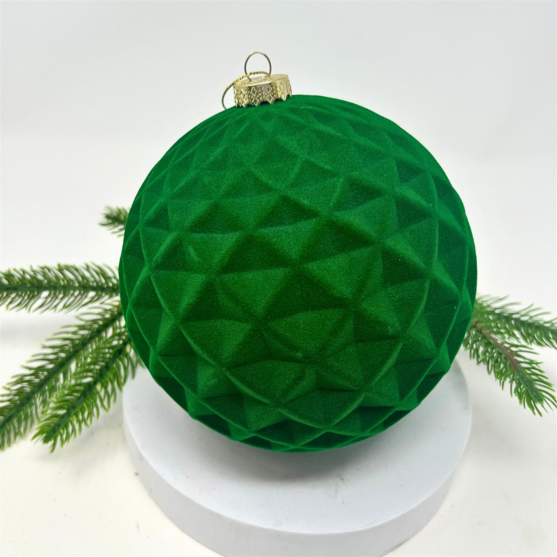 Plastic Flocked Diamond Ball Ornament - Green 6" | YK