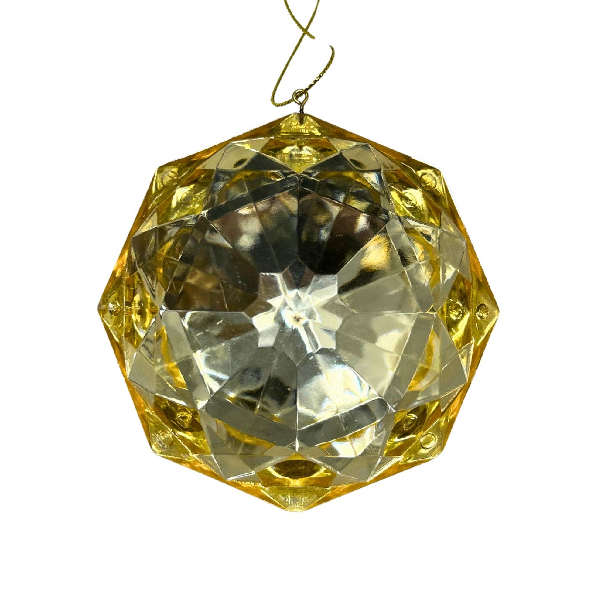 This gold octagon diamond ornament measures 3.5 x 2 x 4 inches, featuring a modern faceted design with a rich, translucent hue. Crafted from durable plastic, it adds a refined pop of color—perfect for enhancing trees, wreaths, garlands, or stylish event décor.