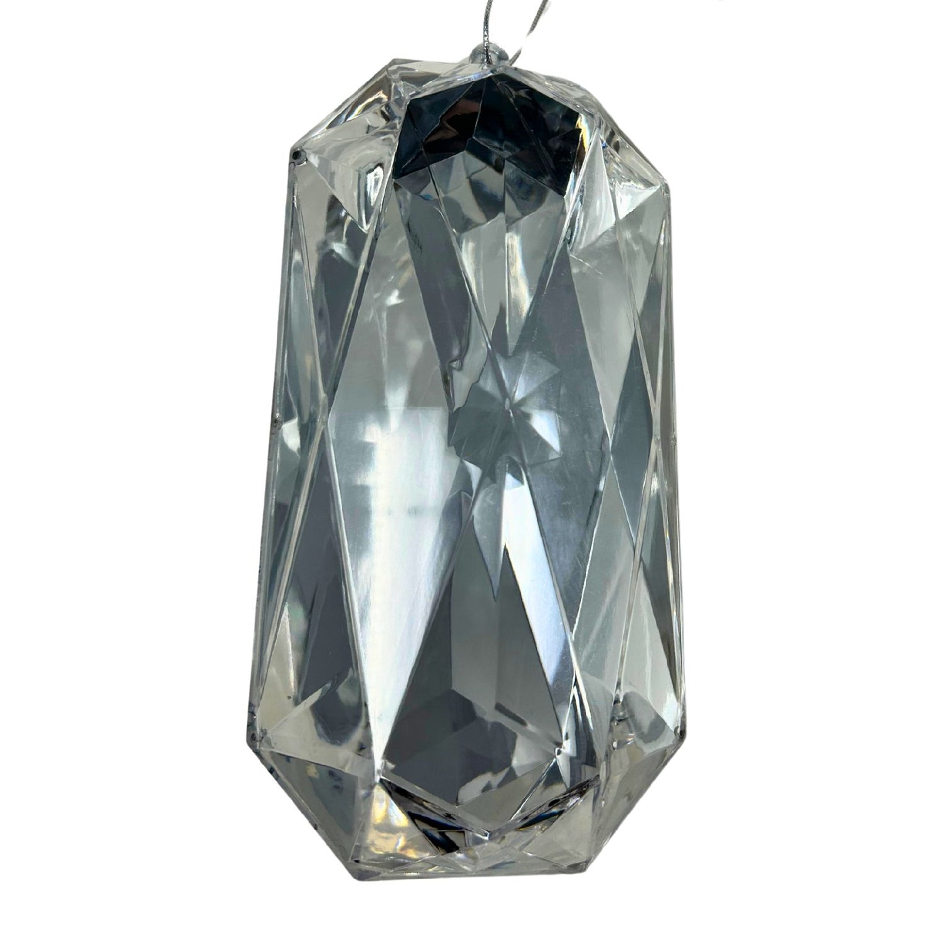 This silver rectangle diamond ornament measures 4.3 x 3.1 x 8.7 inches, offering a sleek, modern elegance. Crafted from durable plastic, its faceted geometric shape catches the light beautifully—perfect for adding a touch of elegance to trees, wreaths, garlands, or contemporary event décor.