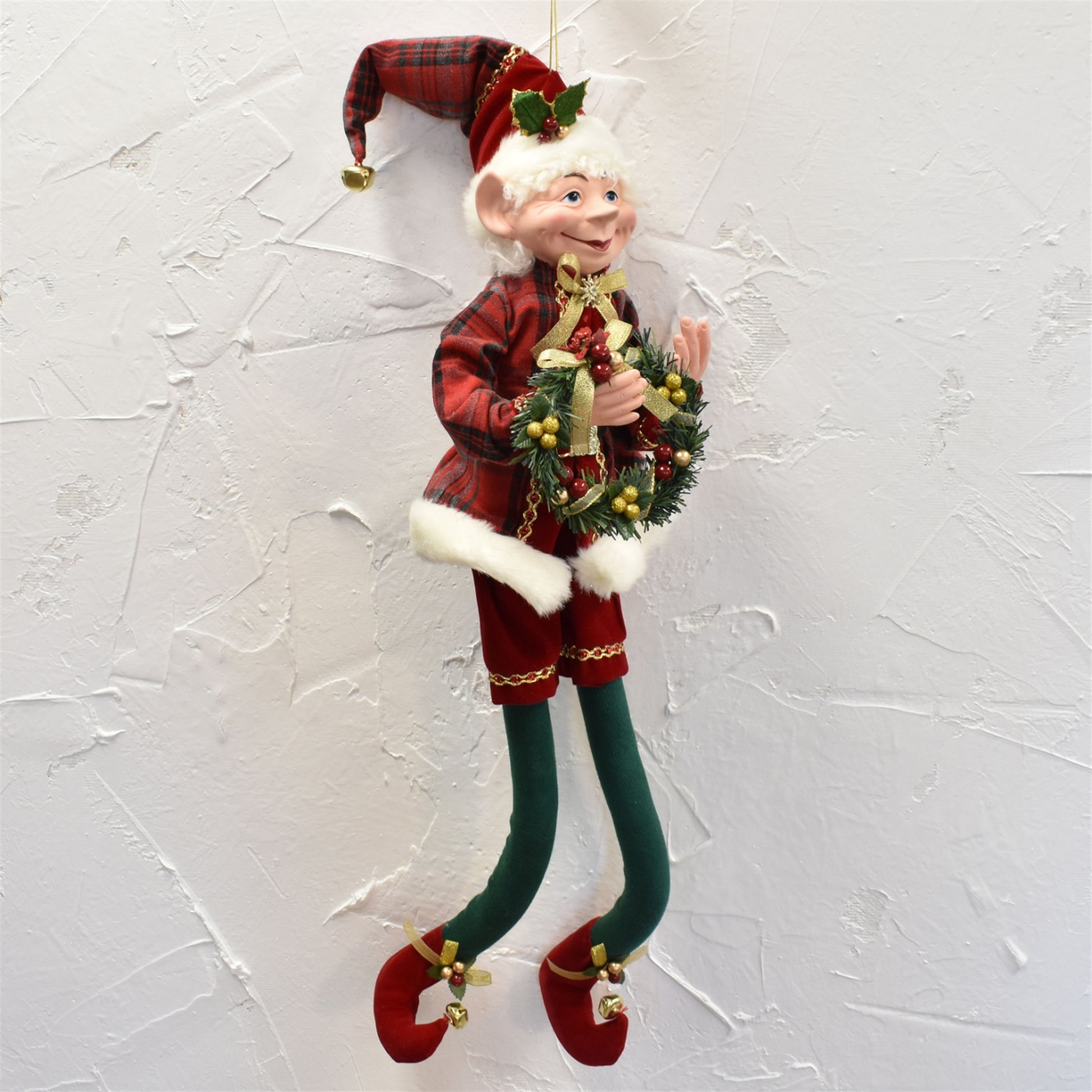 Poseable Whimsical Elf with Wreath 37" in Red Green | BRC22