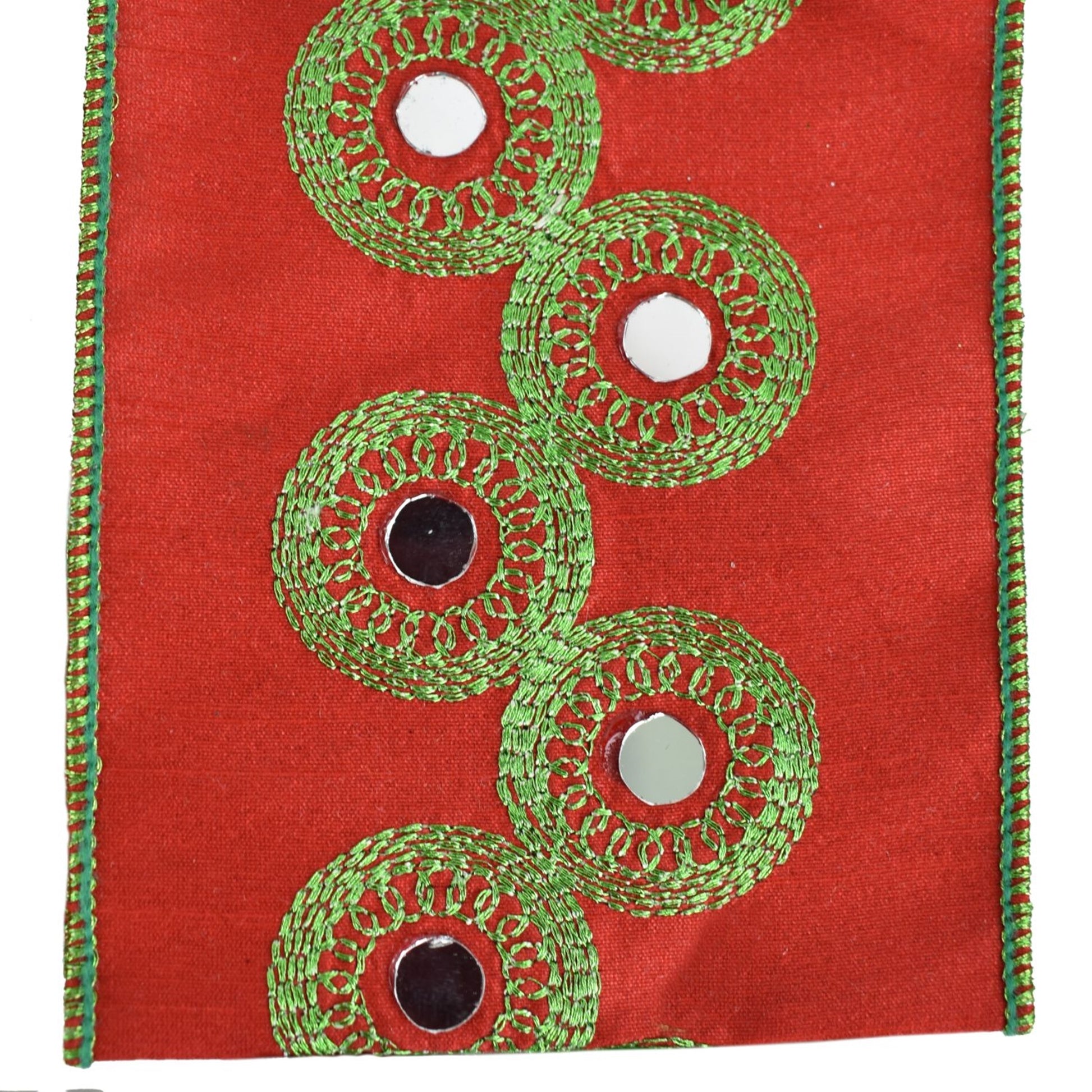 Red Faux Dupioni Ribbon with Mirror Center Green Medallions 4"x 5yd