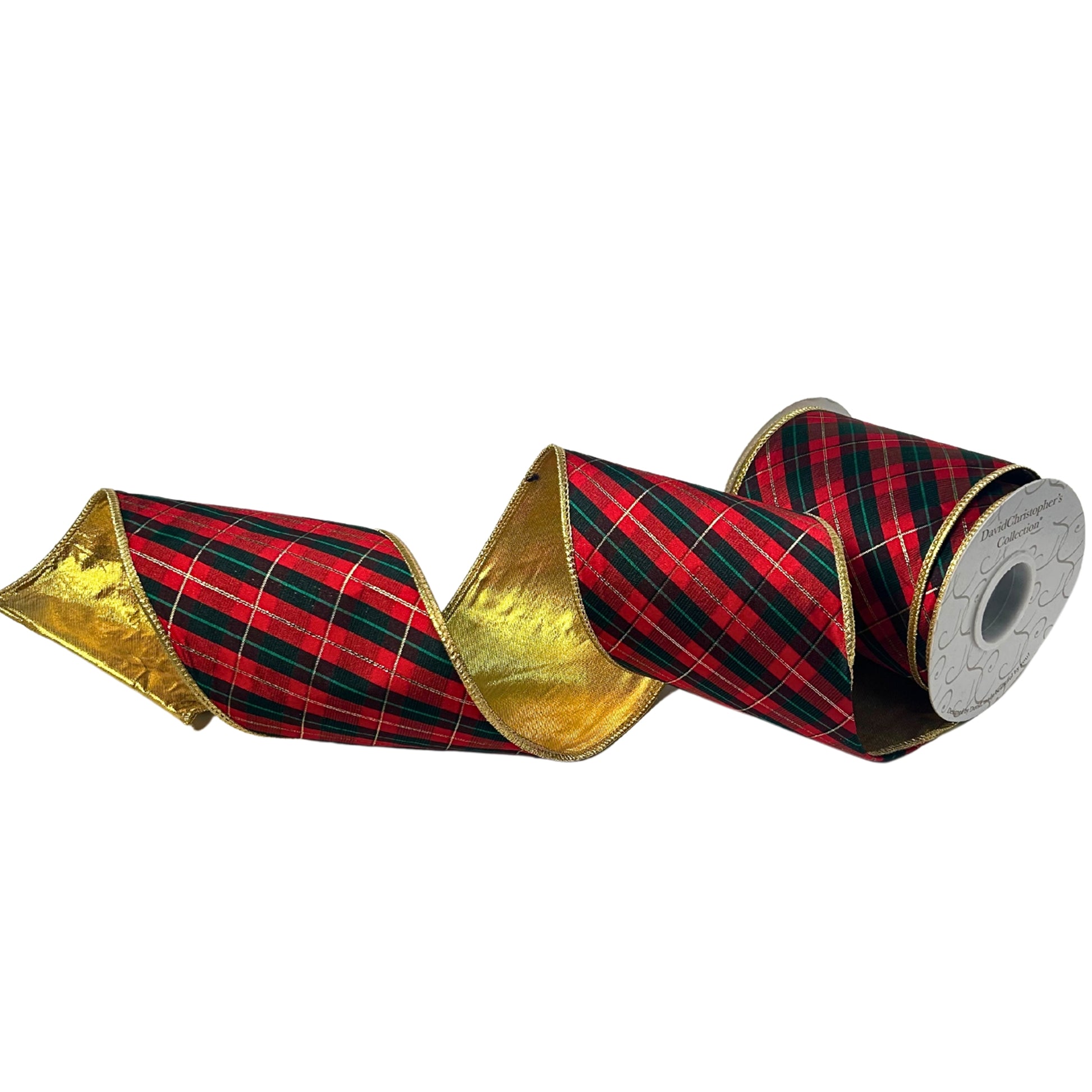 Red/Green/Black Gold back Plaid Ribbon 4” x 10yd | IR
