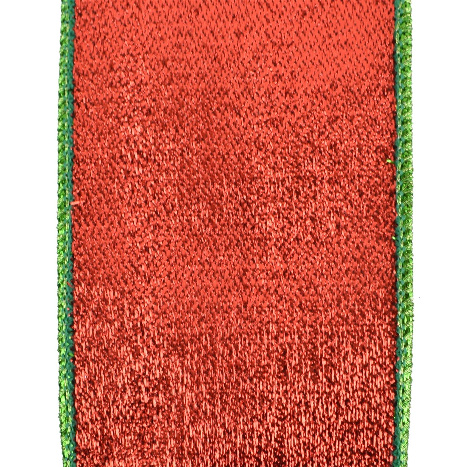 Red Metallic Ribbon w/ Emerald Metallic Edge and backing 2.5" x 10yd | IR