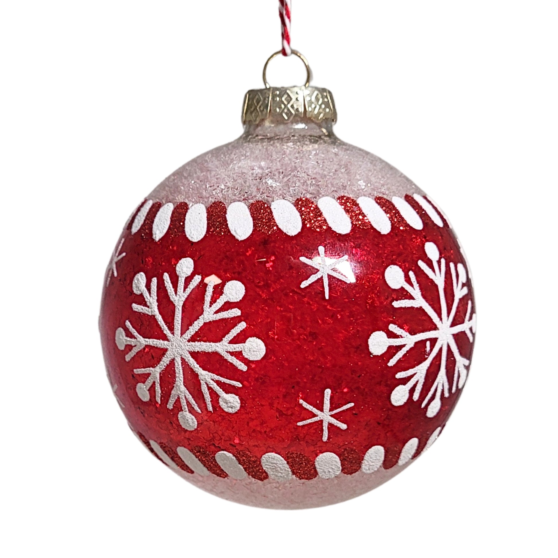 Red/White Snowflake Glass Ball Ornament 4" | TG
