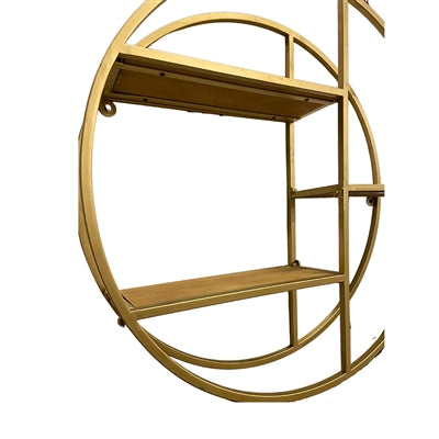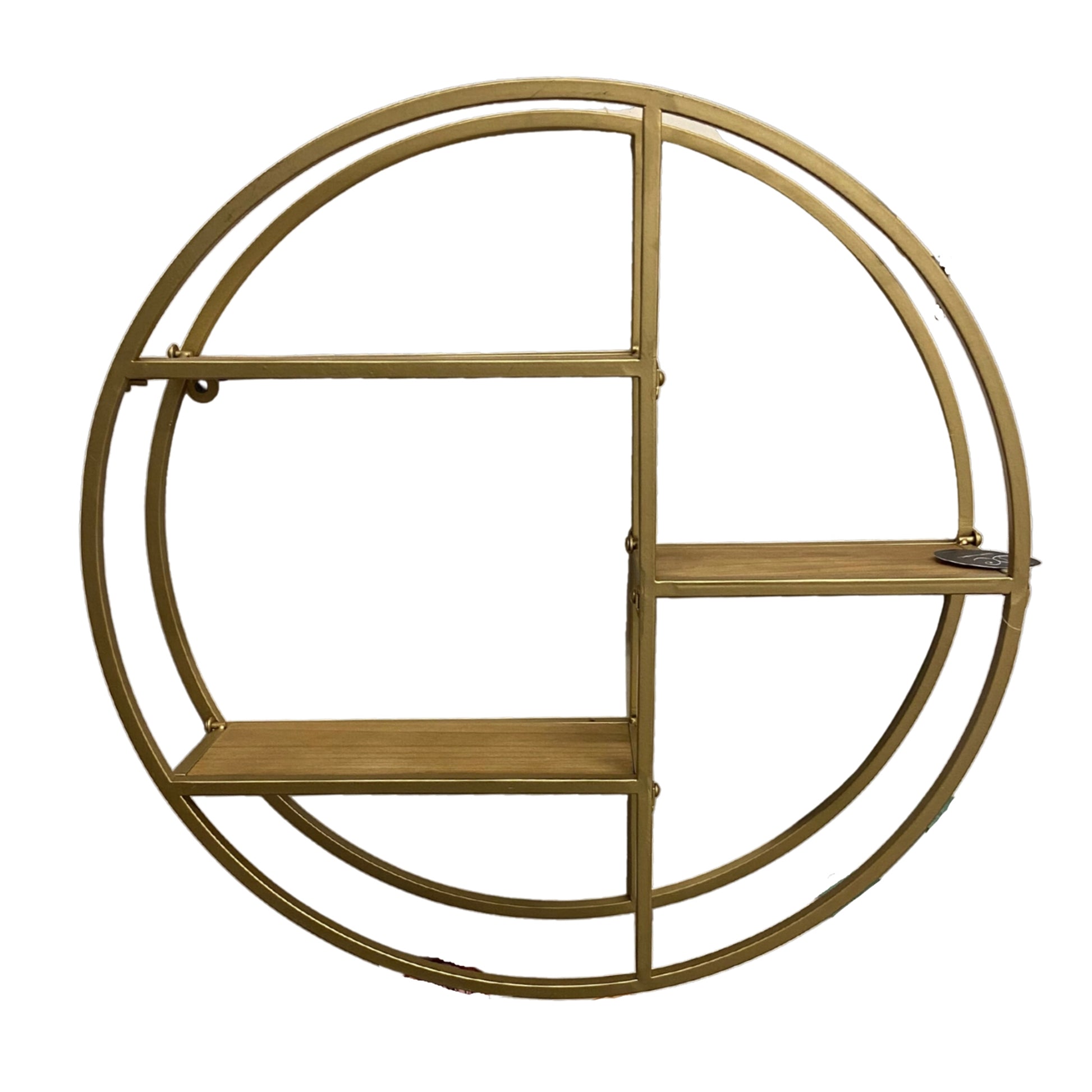 This stylish Round Metal and Wood Wall Shelf comes in a beautiful gold finish, and offers a unique balance of modernity and rustic charm for your space. Constructed of sturdy metal and wood, this shelf is foldable for easy storage and transport.