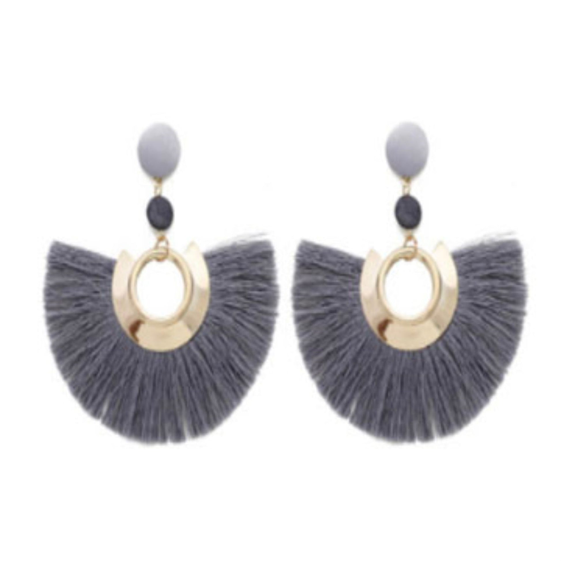 Sasha Tassel Fan Earring in Grey