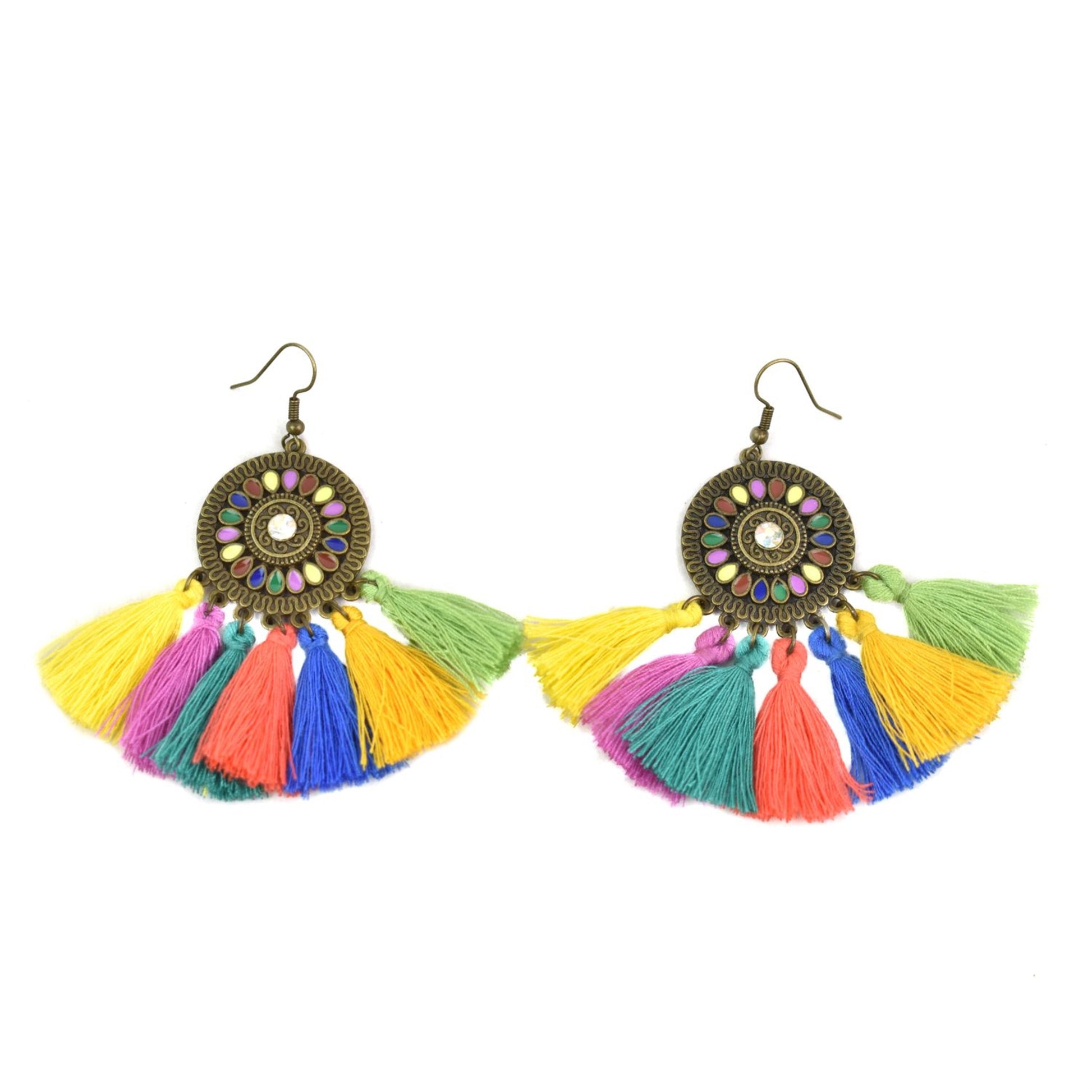 These trendy Selena Rainbow Tassel Earrings are crafted from non-tarnish zinc alloy and decorated with multi-colored tassels. The lightweight construction ensures comfort, while the color-coordinated design will add a touch of vibrant and fun style to your look.