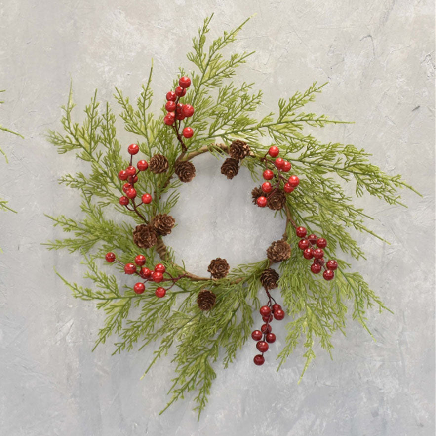 Set of 2 Fresh Cut Natural Look Cedar, Berry And Pinecone Wreath 22"-32" in Green Red | QDC22