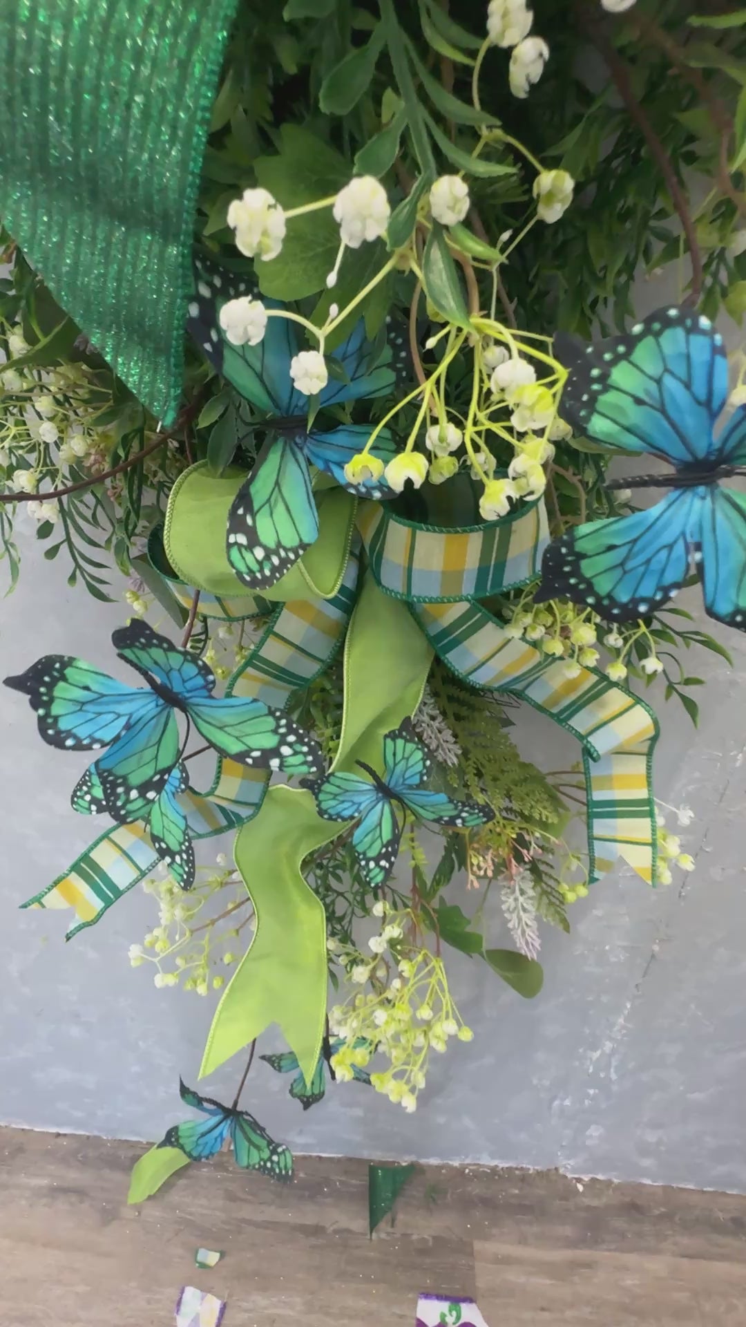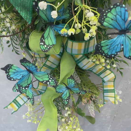 Elevate your spring entryway with this exquisite butterfly swag, expertly crafted and ready to display. Measuring a generous 51" x 25", this finished piece brings refined botanical elegance to your door without requiring assembly. Perfect for welcoming the season with understated luxury and timeless style.