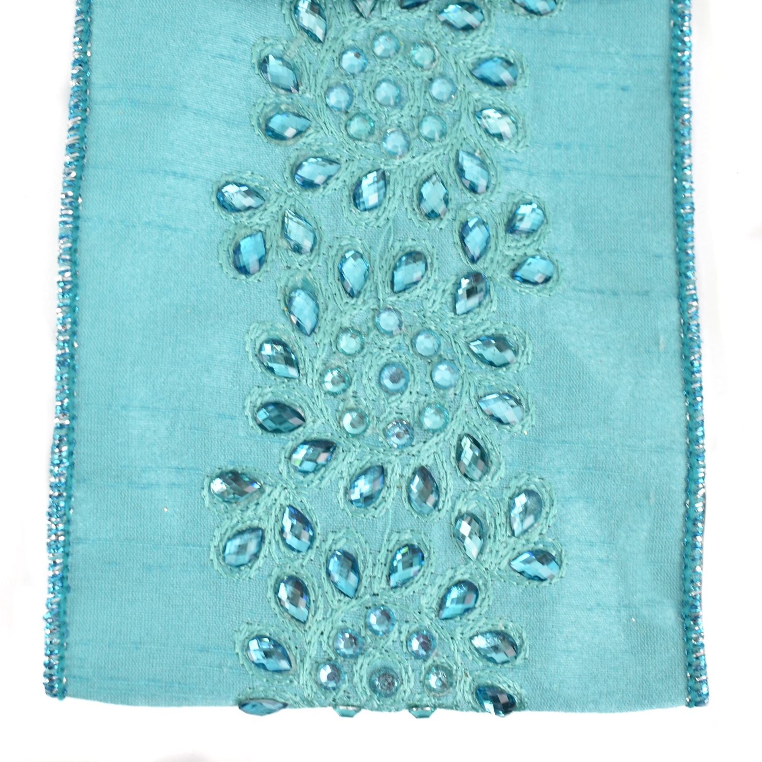 Teal Blue Faux Dupioni Ribbon with Blue Jeweled Center 4" x 5yd