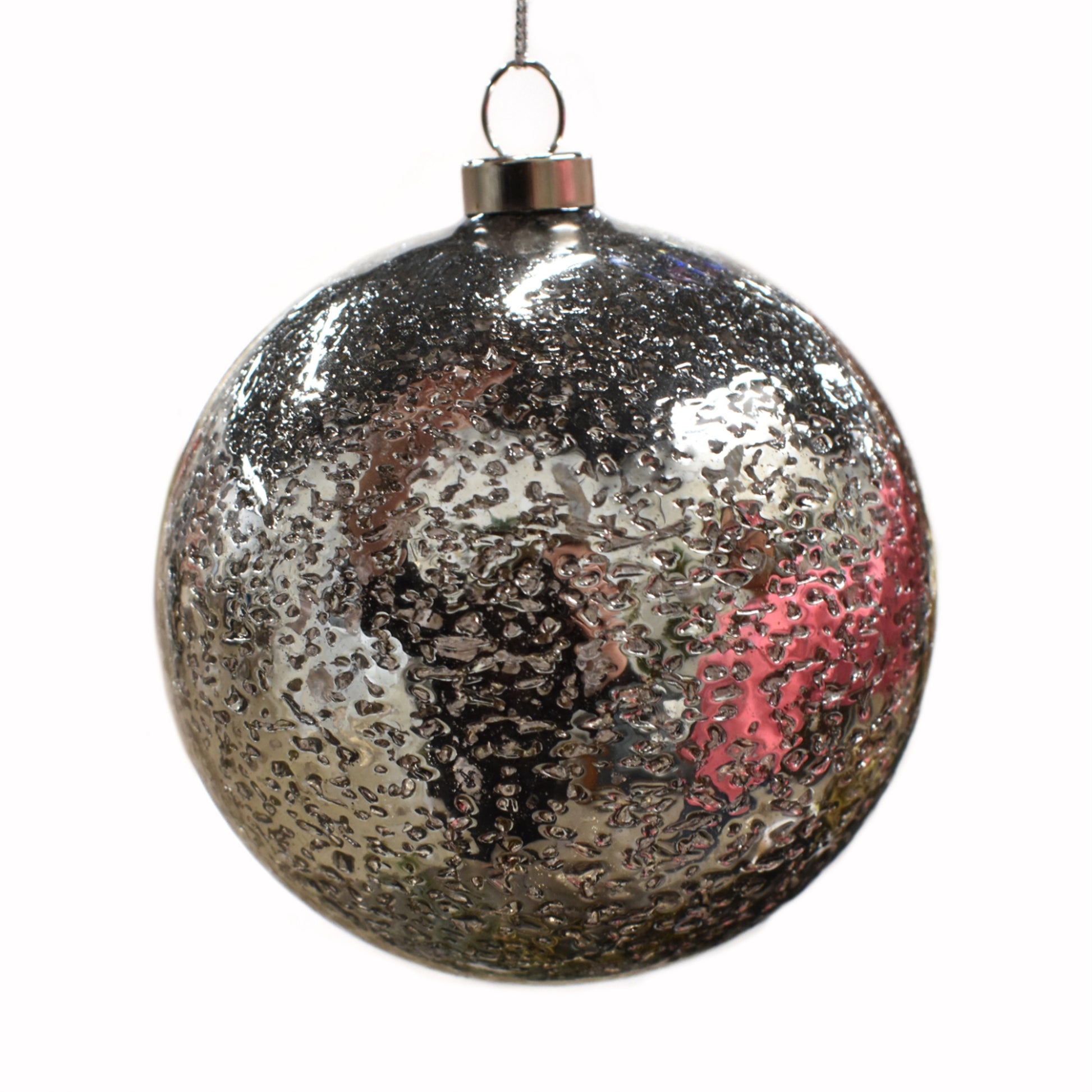 Add a touch of rustic charm to your decor with this Textured Antique Ball Glass Ornament. Crafted with a 4" x 4.5" lightweight design, it features a unique textured surface and a black finish that adds a vintage-inspired appeal. Perfect for holiday decorating or everyday decor.