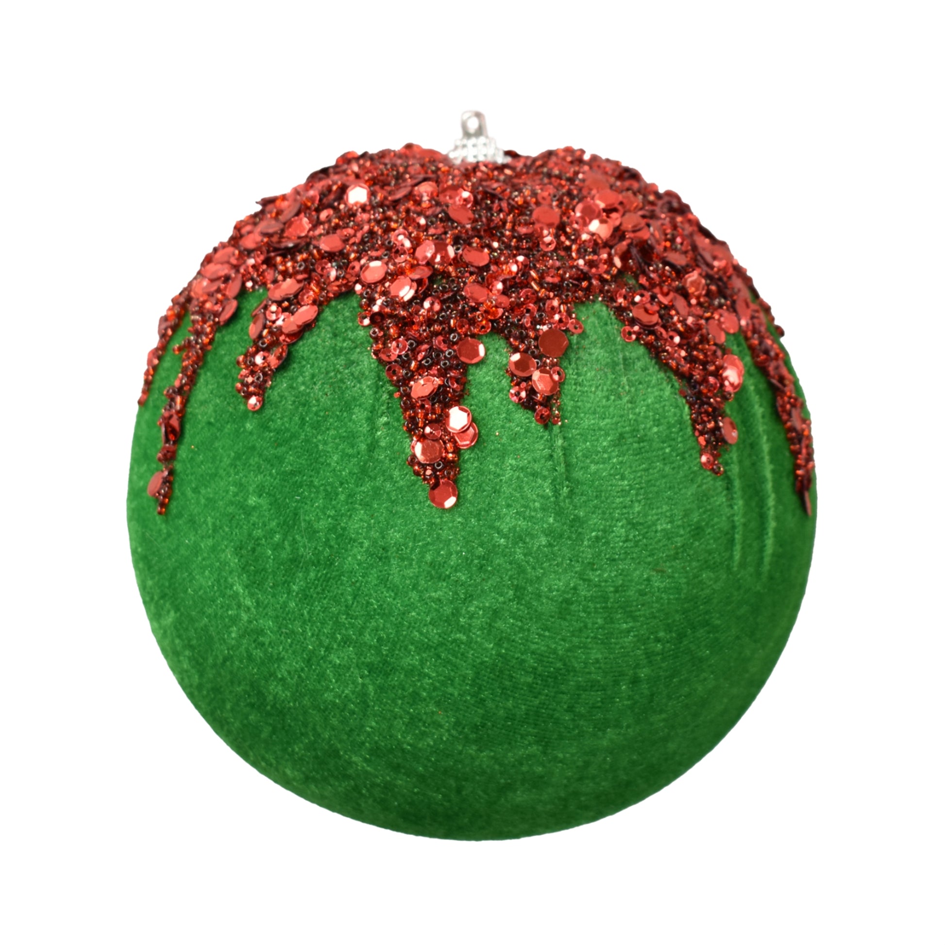 Velvet Ball With Dripping Sequin Design 5" in Lt.Green/Red | TAC22
