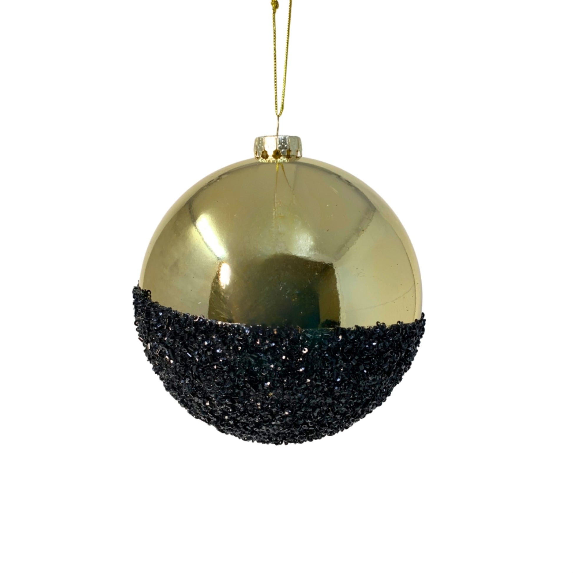 Expertly designed, VP HALF THE FUN CHRISTMAS BALL ORNAMENT in 4" size comes in a sophisticated black and gold color combination. This ornament adds a touch of elegance and glamour to your holiday decor. Enjoy the festive season with half the effort with this durable and stylish ornament.