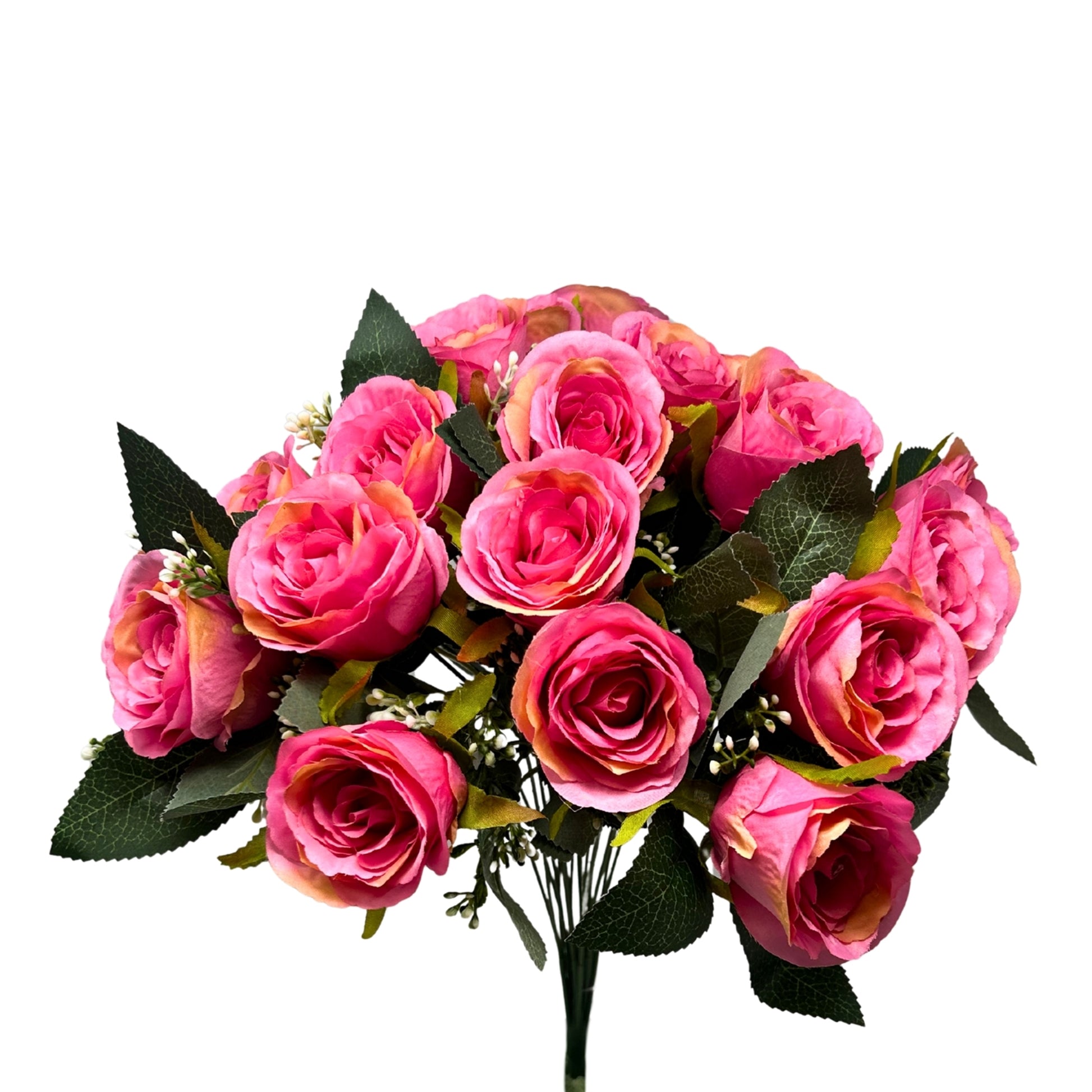 The Wedding Rose Bud x18 features eighteen delicate, lifelike rose buds accented with soft filler for added texture and dimension. At 18" tall, it’s perfect for creating elegant centerpieces, floral arrangements, and memorial displays. This versatile bush shines on its own or beautifully complements other florals, offering a timeless, refined touch to any arrangement.