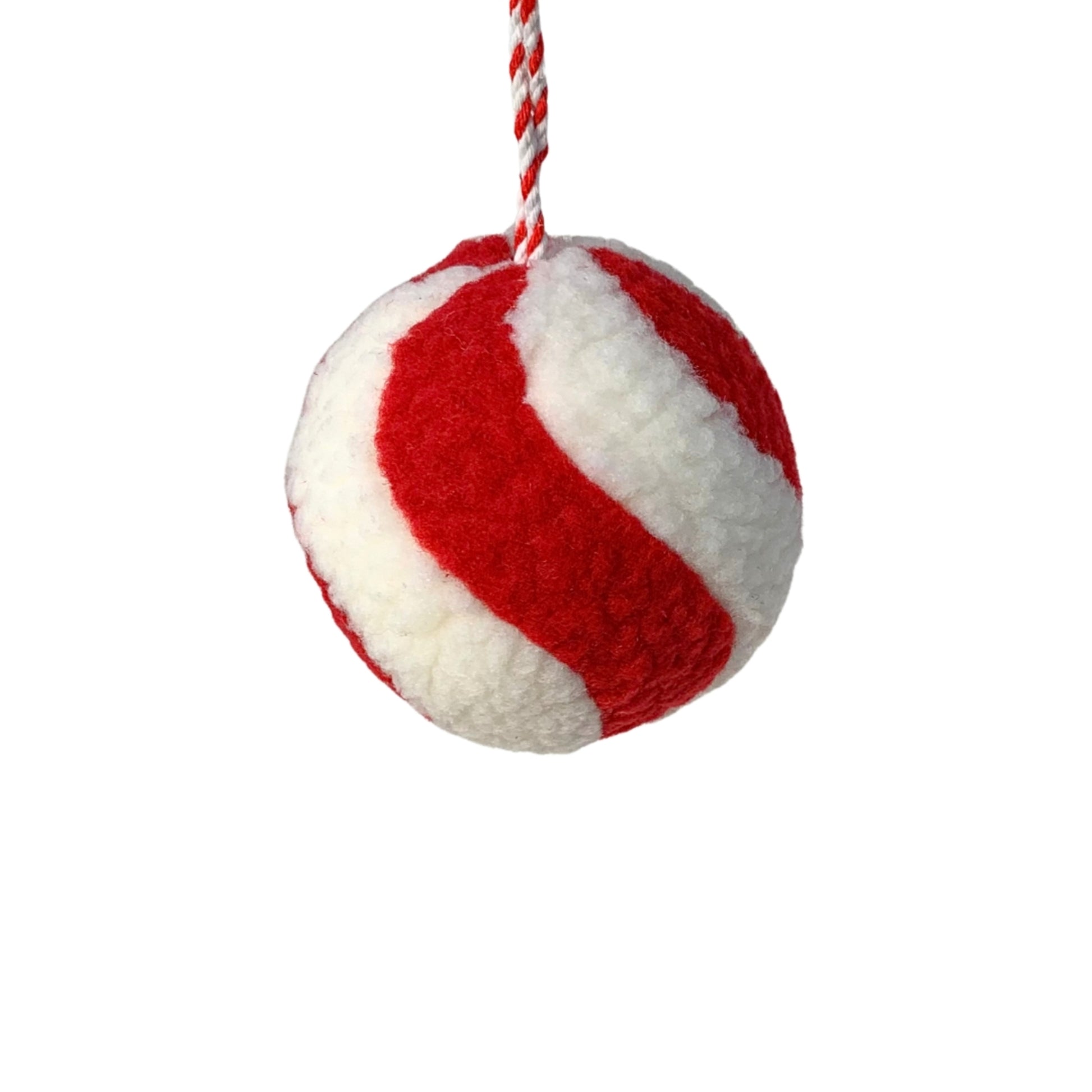 Whimsical Wool Peppermint Stripe Ball Ornament 4" | YK